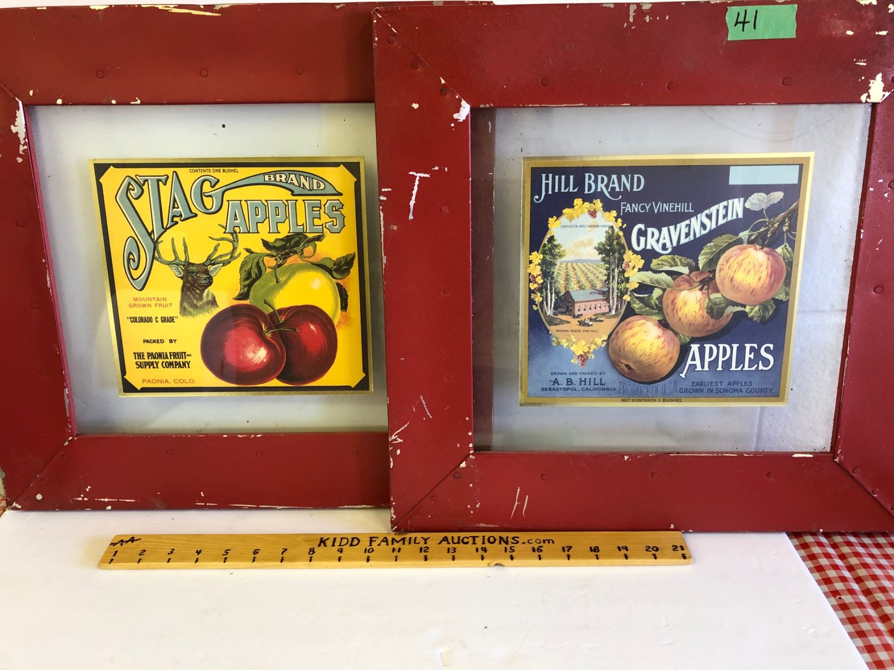 GR OF 2 APPLE ADVERTISING SIGNS IN TIN FRAMES