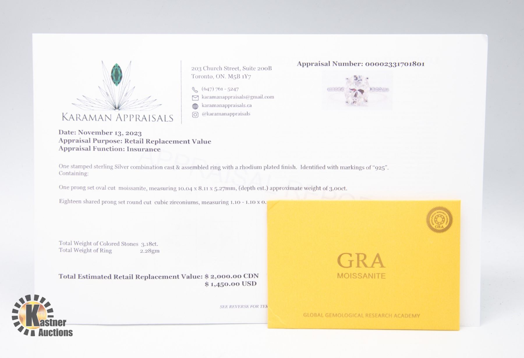 AN APPROXIMATE 3.0 CARAT WITH 18 CUBIC ZIRCONIUM WEIGHING A TOTAL 0.18 CARATS RING SIZE 8.5 APPRAISED VALUE $2,000.00 **ALL ITEMS MUST BE REMOVED BY 5PM SATURDAY, DECEMBER 9TH 2023. ALL REMAINING ITEMS WILL BE SUBJECT TO A $6.00 PER DAY STORAGE CHARGE. ANY ITEMS REMAINING AFTER THURSDAY, DECEMBER 21ST 2023 WILL BE CONSIDERED FORFEITED. NO REFUNDS WILL BE ISSUED FOR FORFEITED ITEMS. TO SCHEDULE A PICK UP APPOINTMENT CLICK HERE