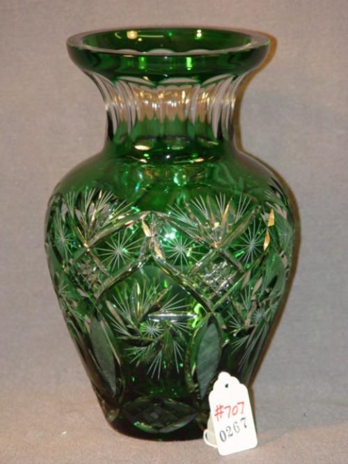 GREEN CUT OVERLAY 11" GLASS VASE