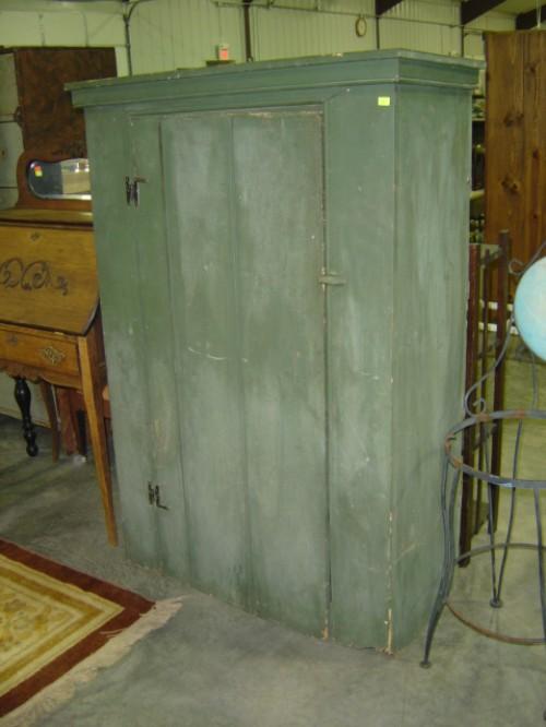 GREEN PAINTED SINGLE DOOR PANTRY CABINET; SOFT WOOD