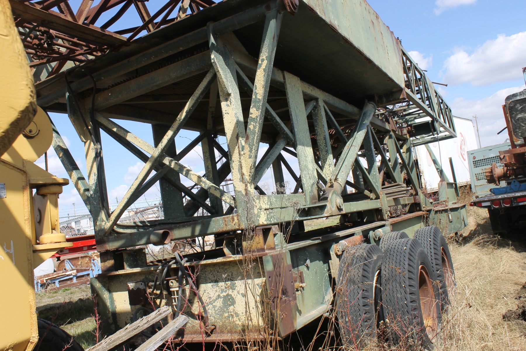 GREEN TANDEM AXLE DRILLING UNIT C/W HYD TANKS, ELECT MOTORS, ELECTRICAL PANEL, HD FRAME, 10X20 TIRES