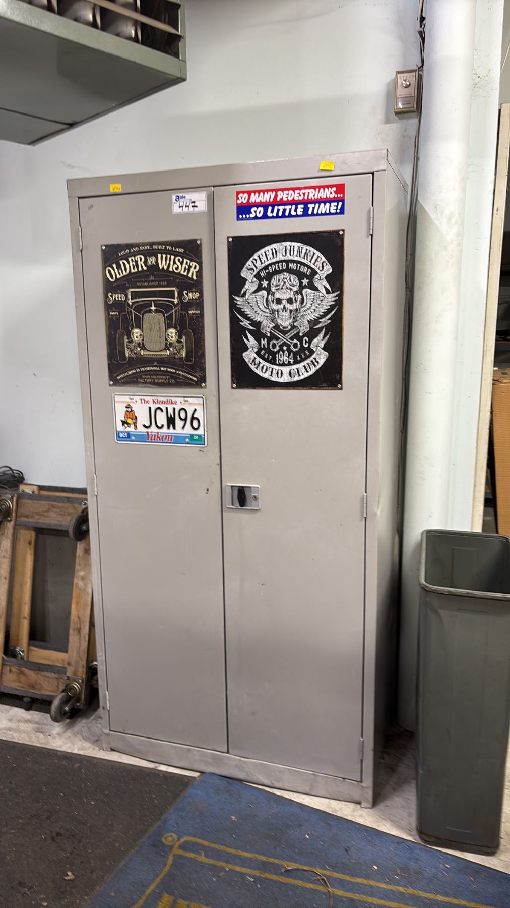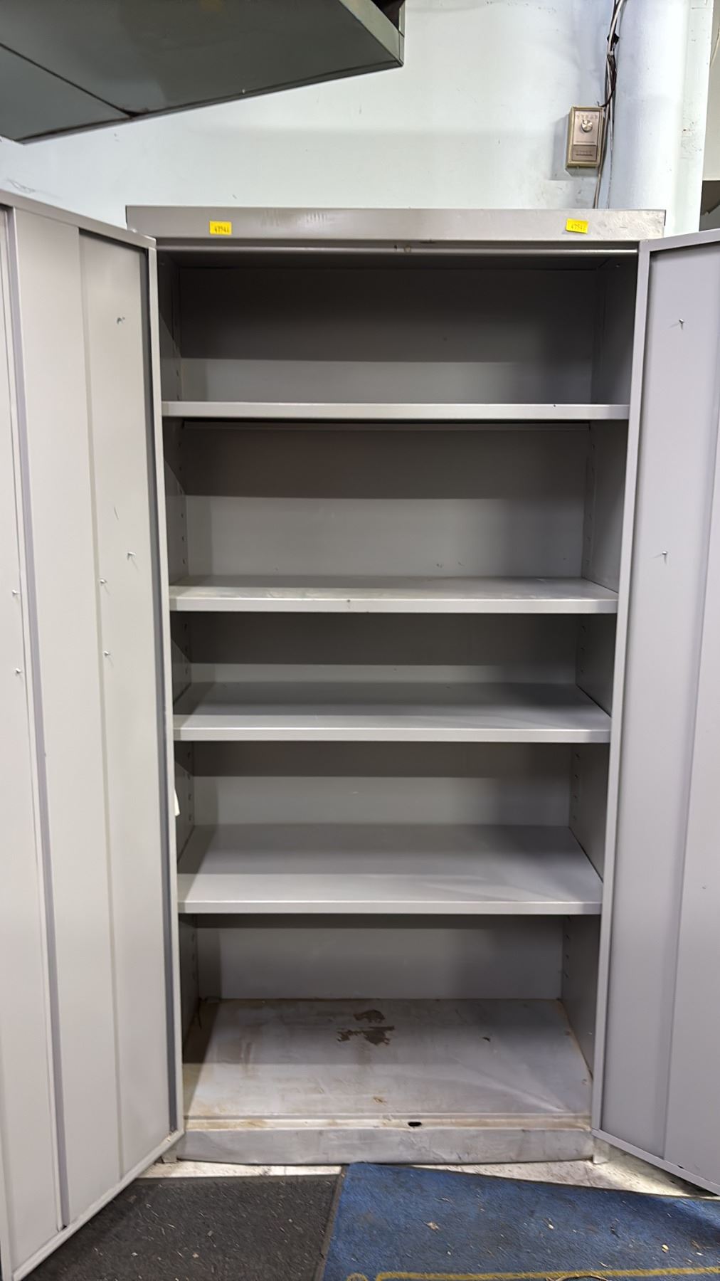 GREY TWO DOOR STORAGE CABINET - APPROX. 36"W X 18"D X 72"H