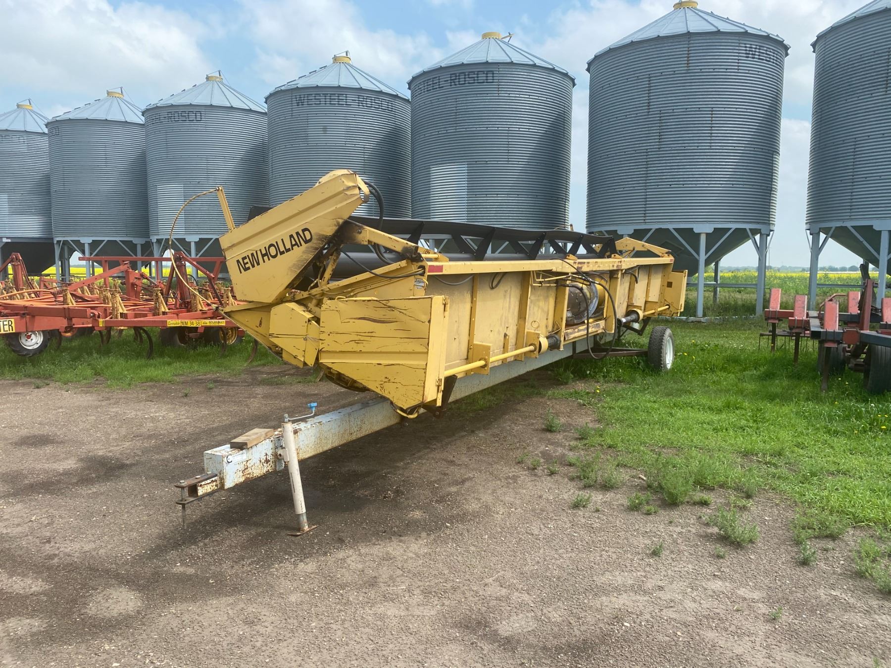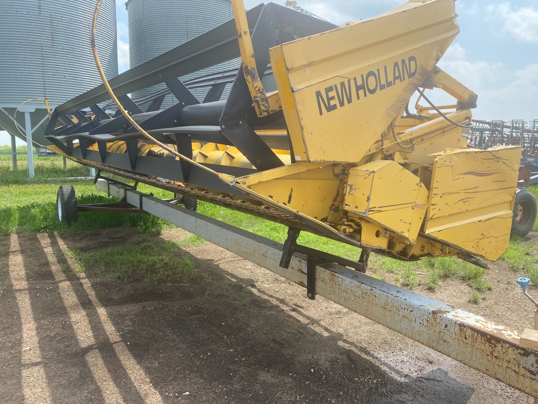 (GROUP LOT- 6,7,8 & 9) NH 25' Straight-cut header, Batt Reels #587604 c/w creative enterprises transport (shedded)