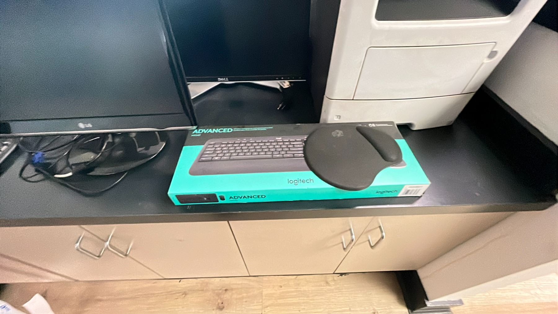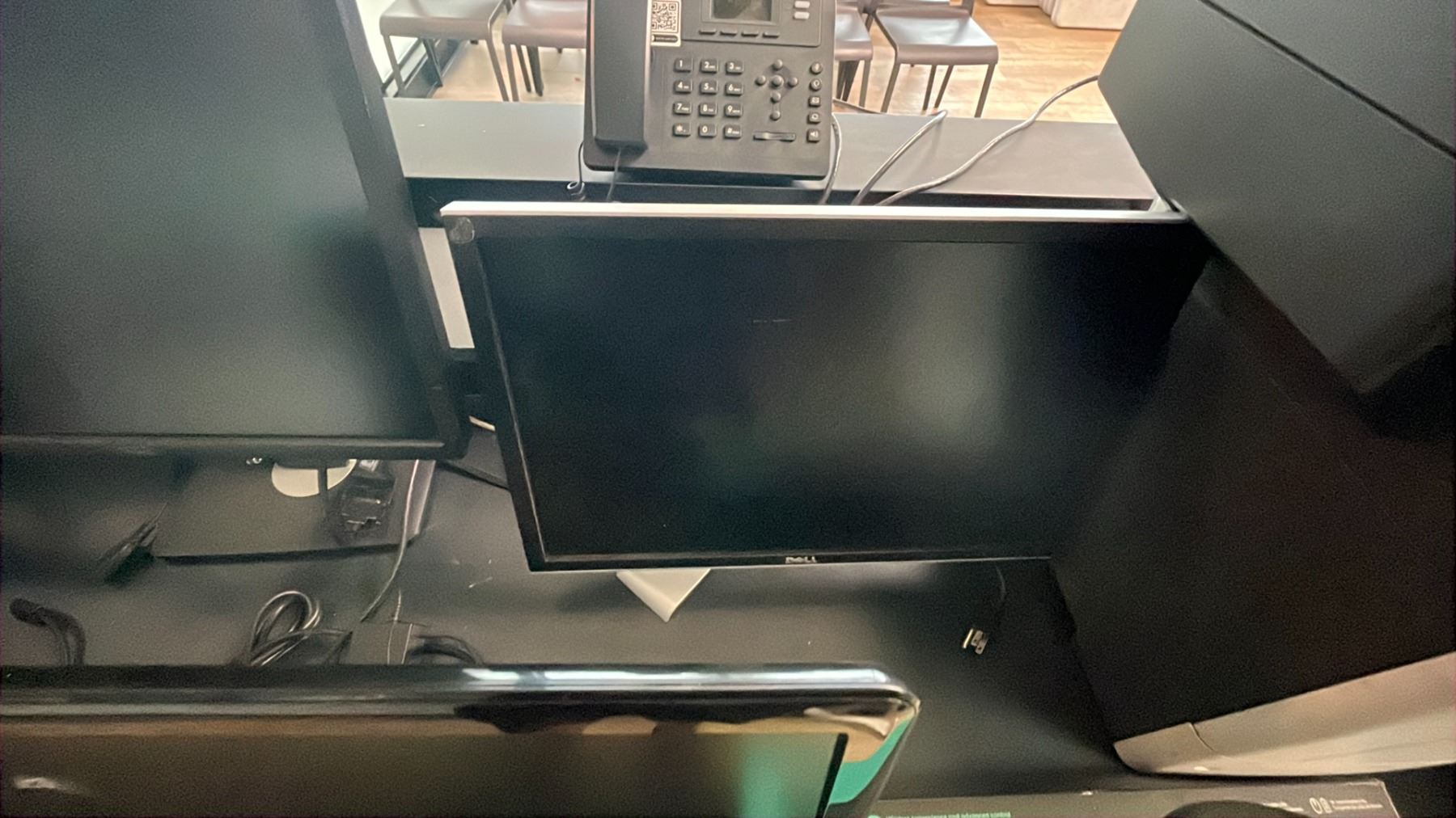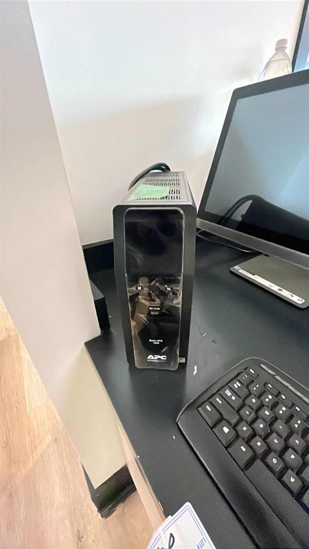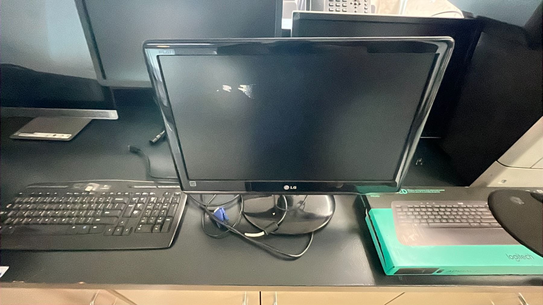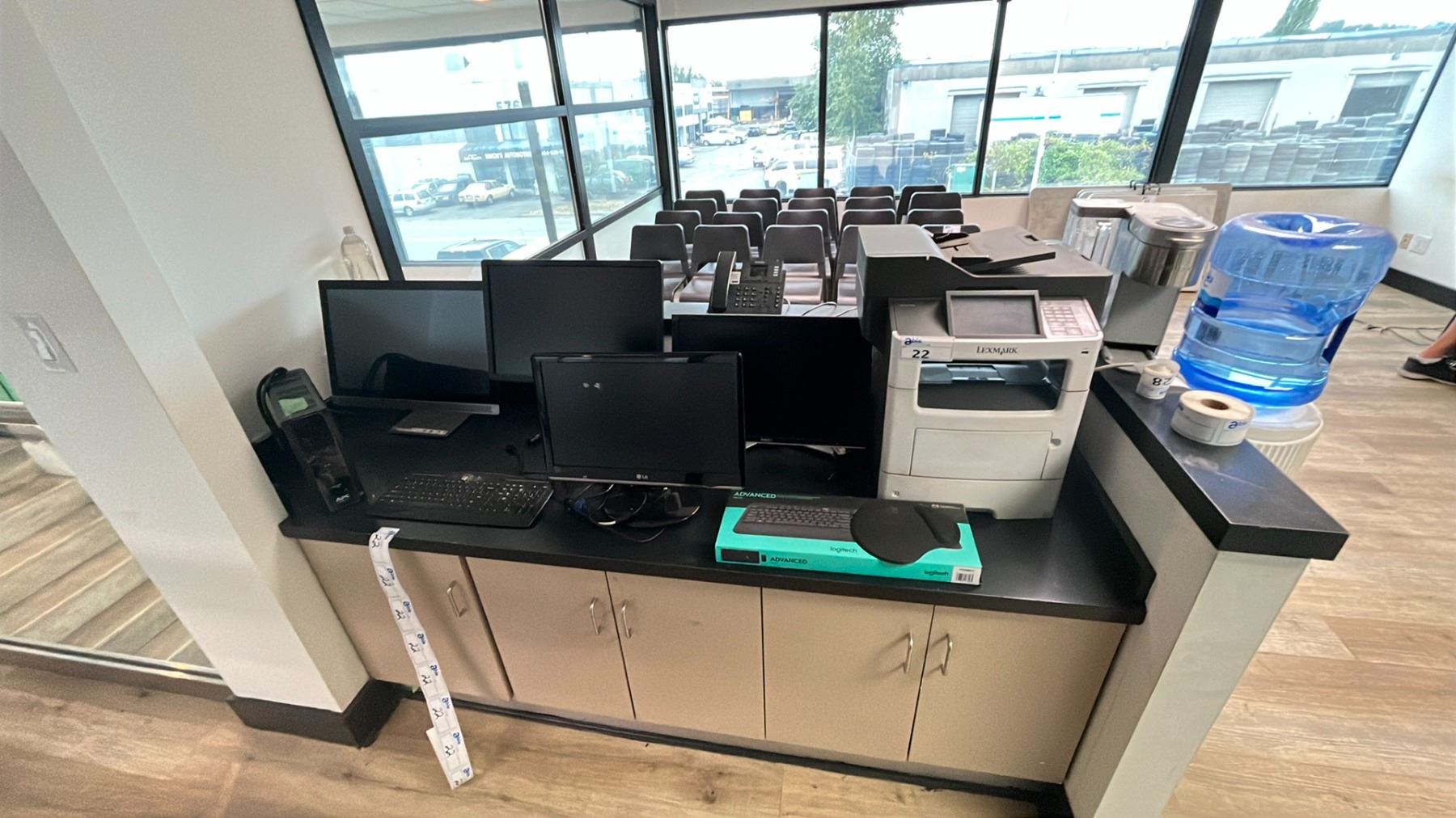 GROUP OF OFFICE ITEMS - LEXMARK MX617DE PRINTER, (4) COMPUTER MONITORS, APC BATTERY BACKUP, (2) KEYBOARDS, WATER COOLER, KEURIG COFFEE MAKER AND PHONE