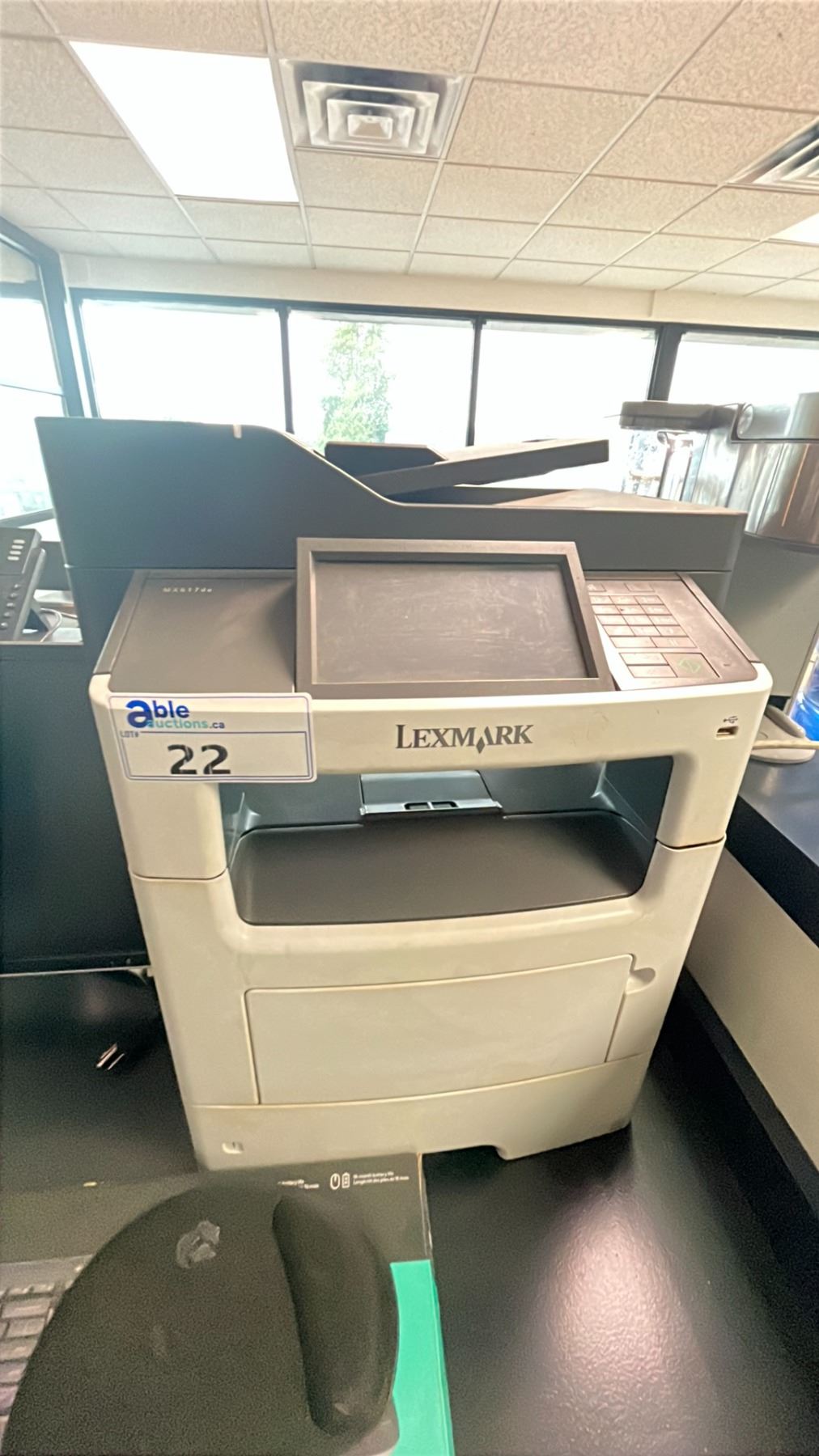GROUP OF OFFICE ITEMS - LEXMARK MX617DE PRINTER, (4) COMPUTER MONITORS, APC BATTERY BACKUP,