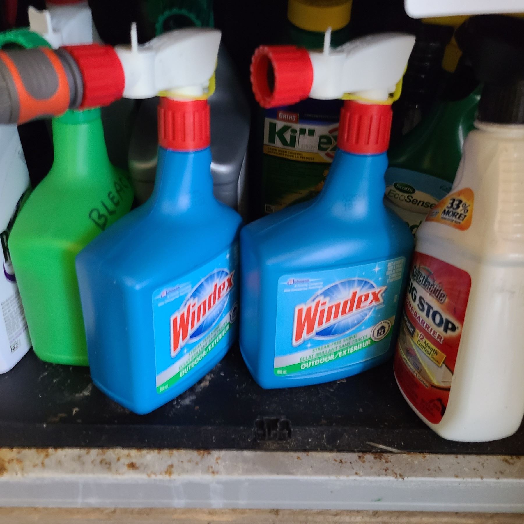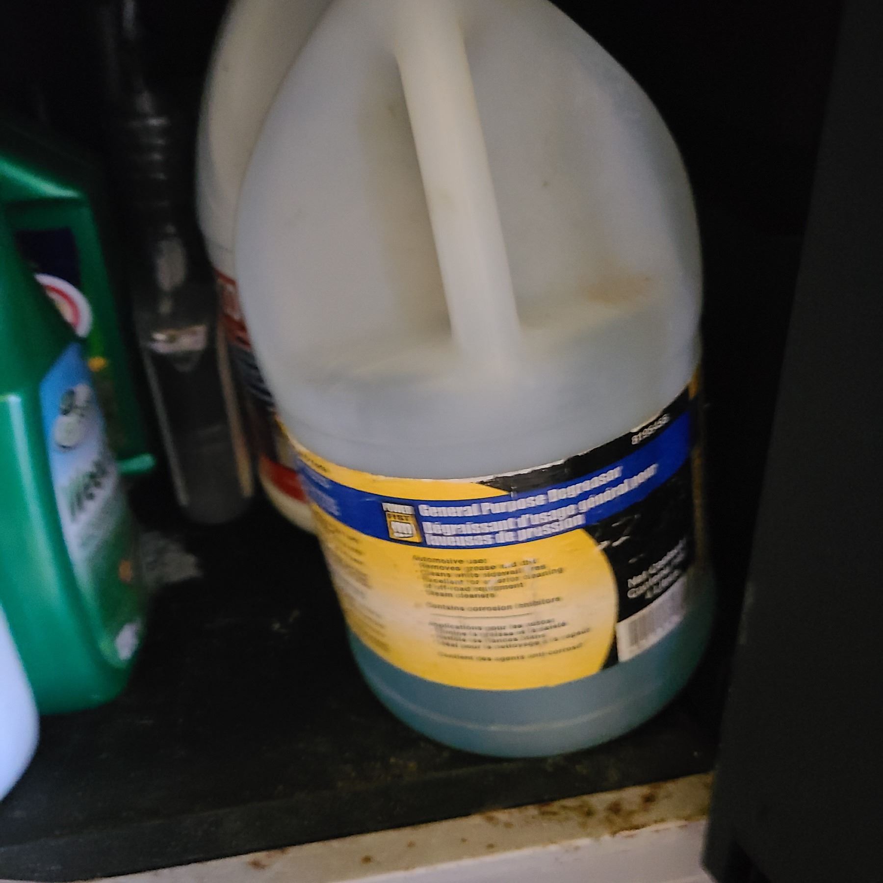 2 shelves of chemicals most are 1/2 to full. Pickup at 10 am