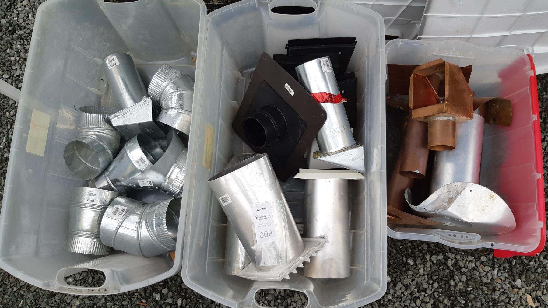 3 bins of copper & galvanized air intakes. Pickup at 11 am
