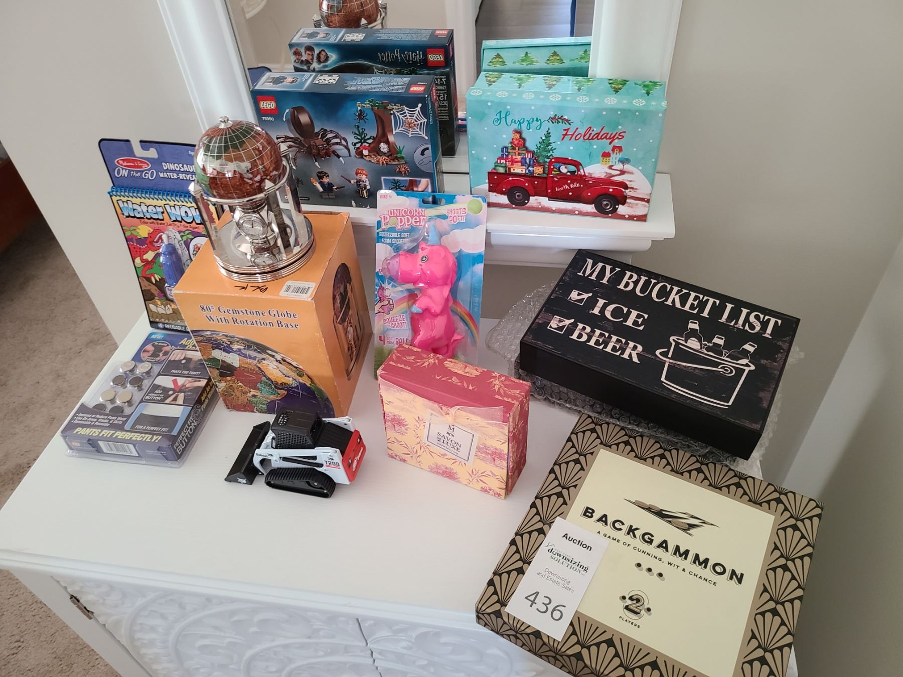 Assortment of games, globe, toys and odds. Pickup at 11 am.