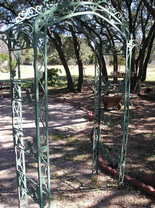 Green metal garden arch