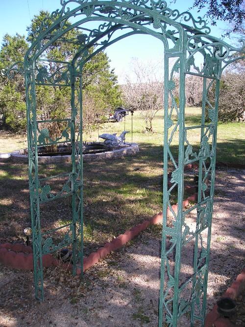Green metal garden arch