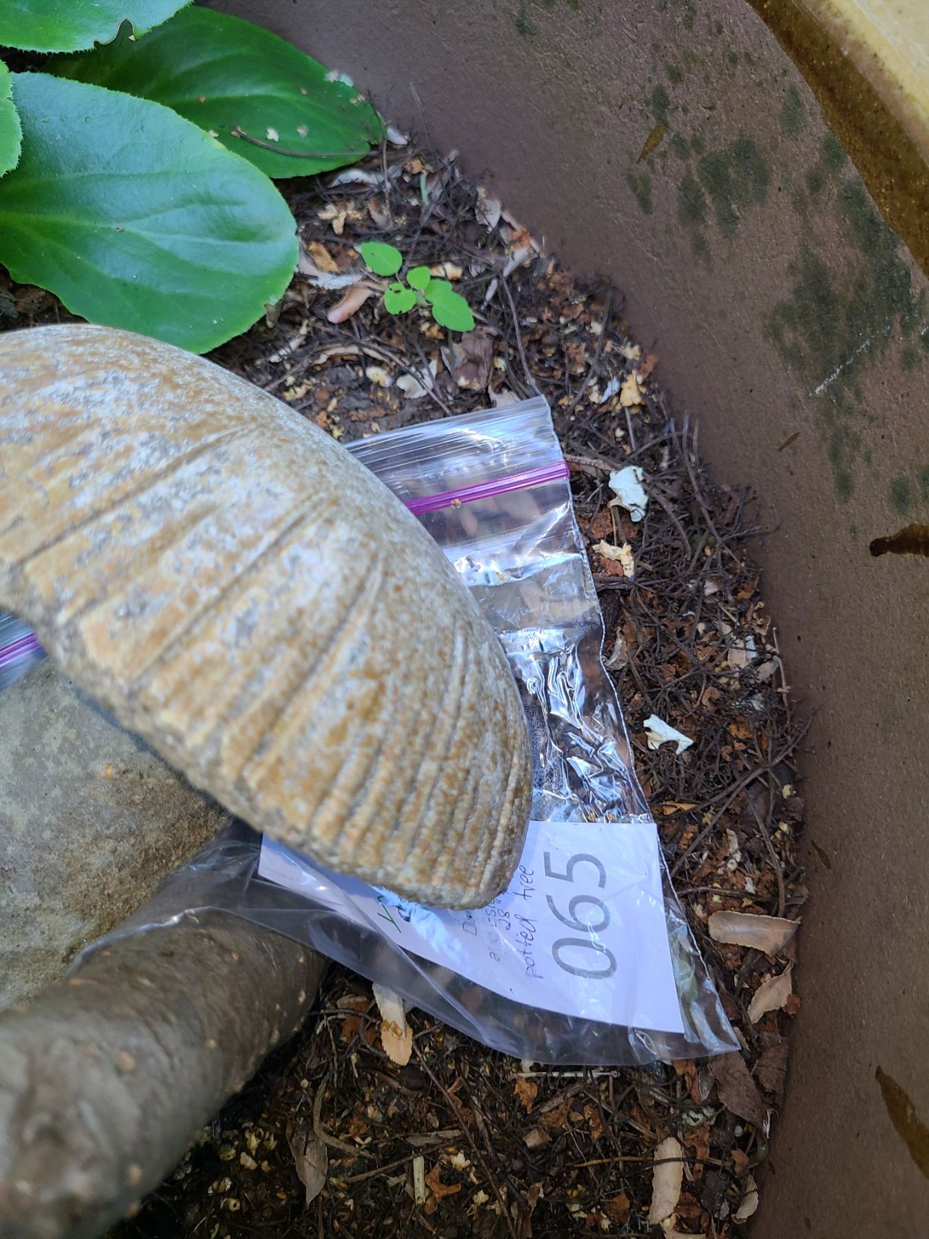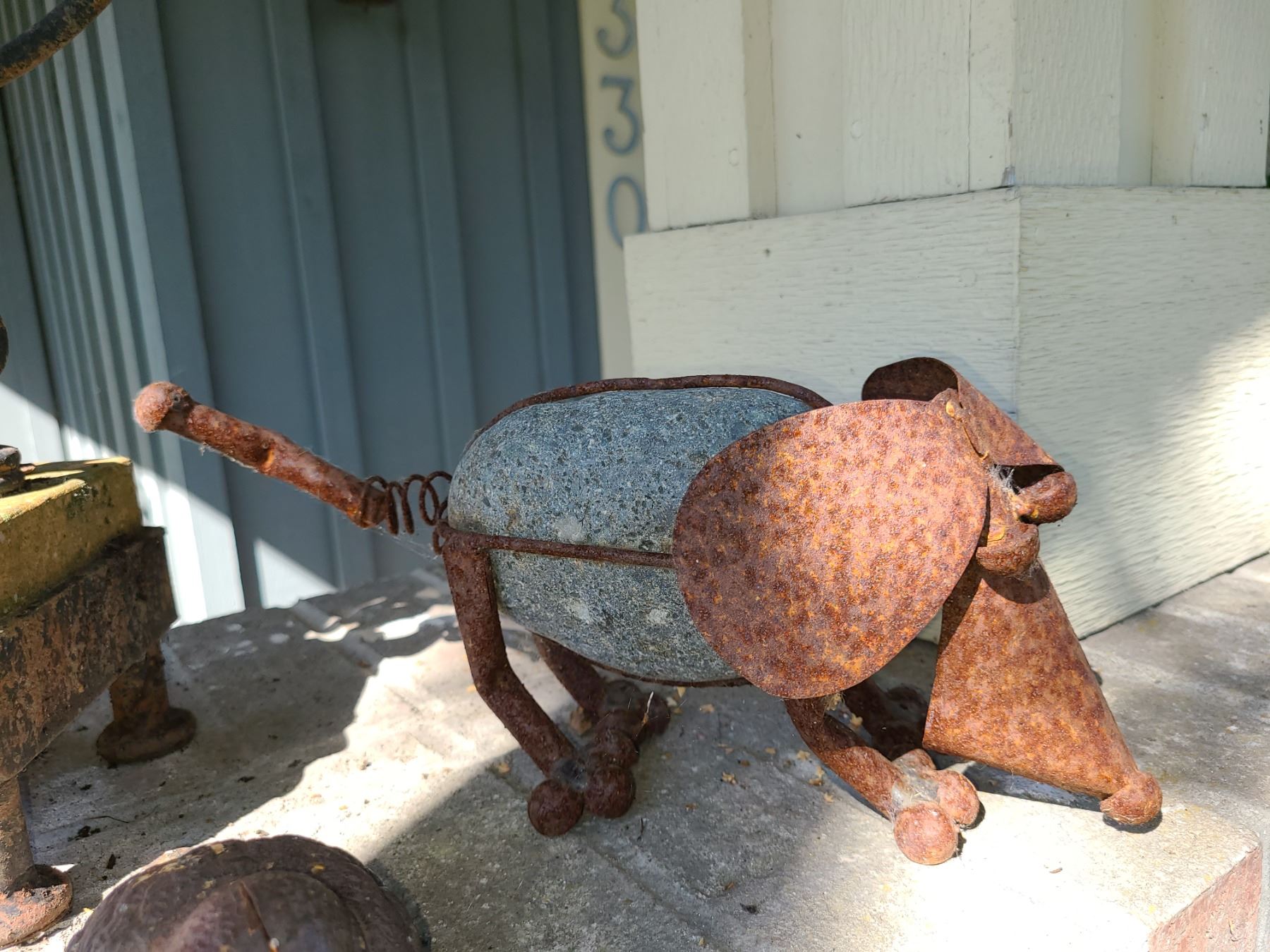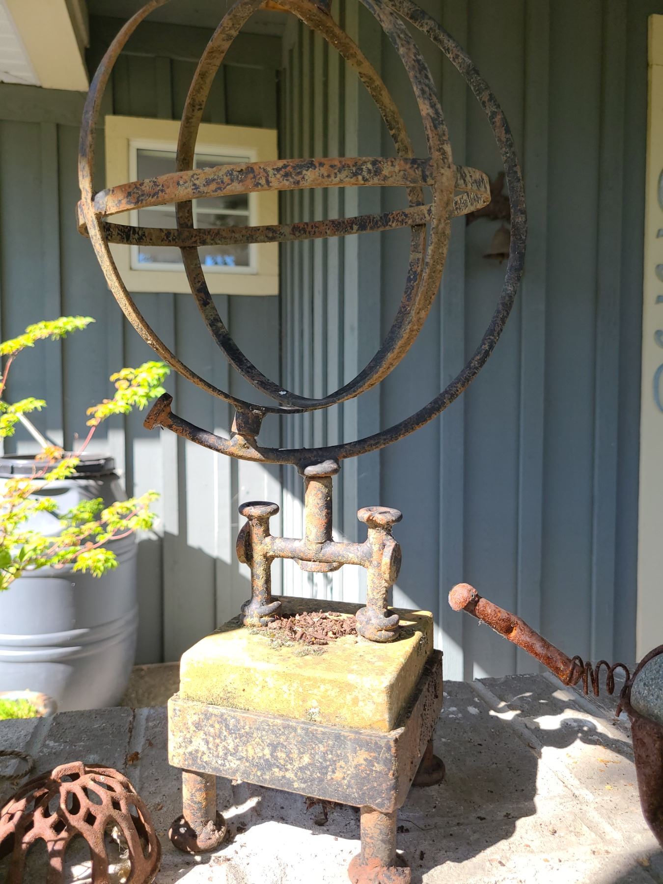 Assortment of garden decor including candle. Some rusty. Pickup 9 am.