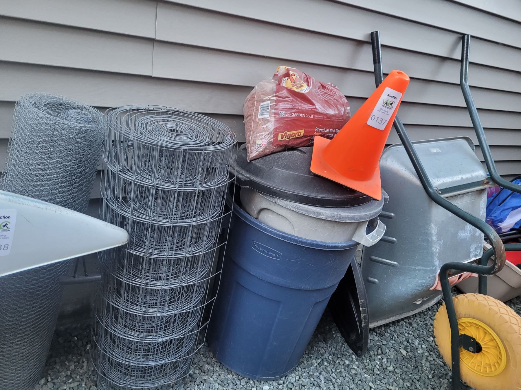 Fenching, dust bins, conte, wheel barrow. Pickup at 10 am