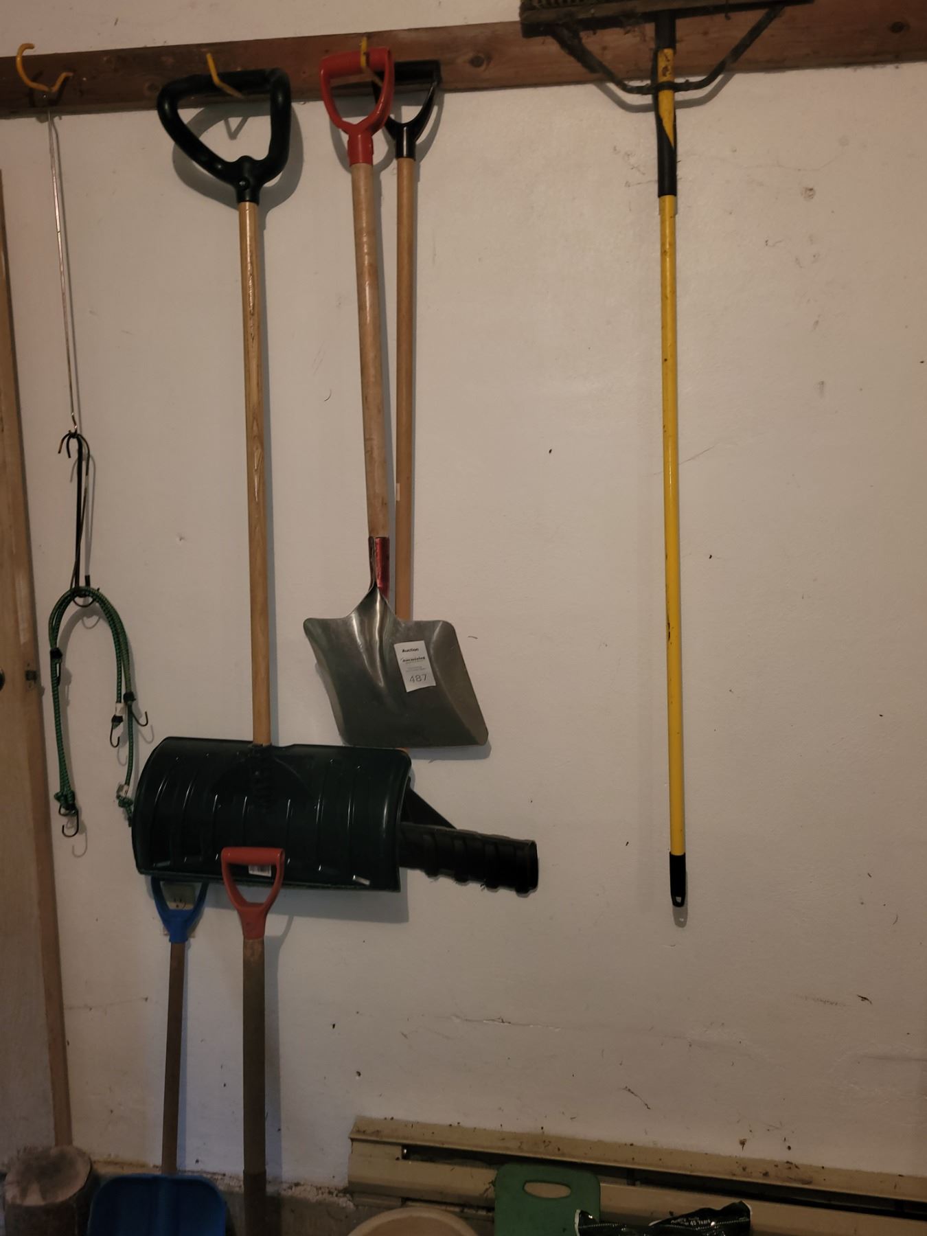 Spade, snow shoves, broom, flower pots, soil. Pickup at 9 am,