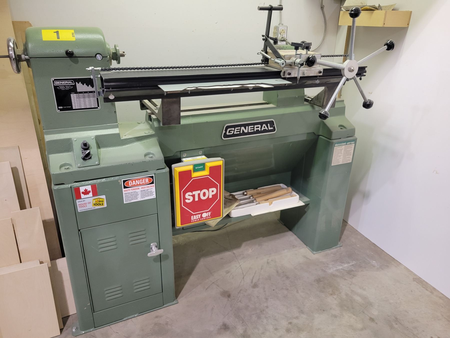 General Lathe, multispeed with duplicator, forward/reverse, 5'long x 24"wide x 50"high, 220 volt, + bolt turning accessories