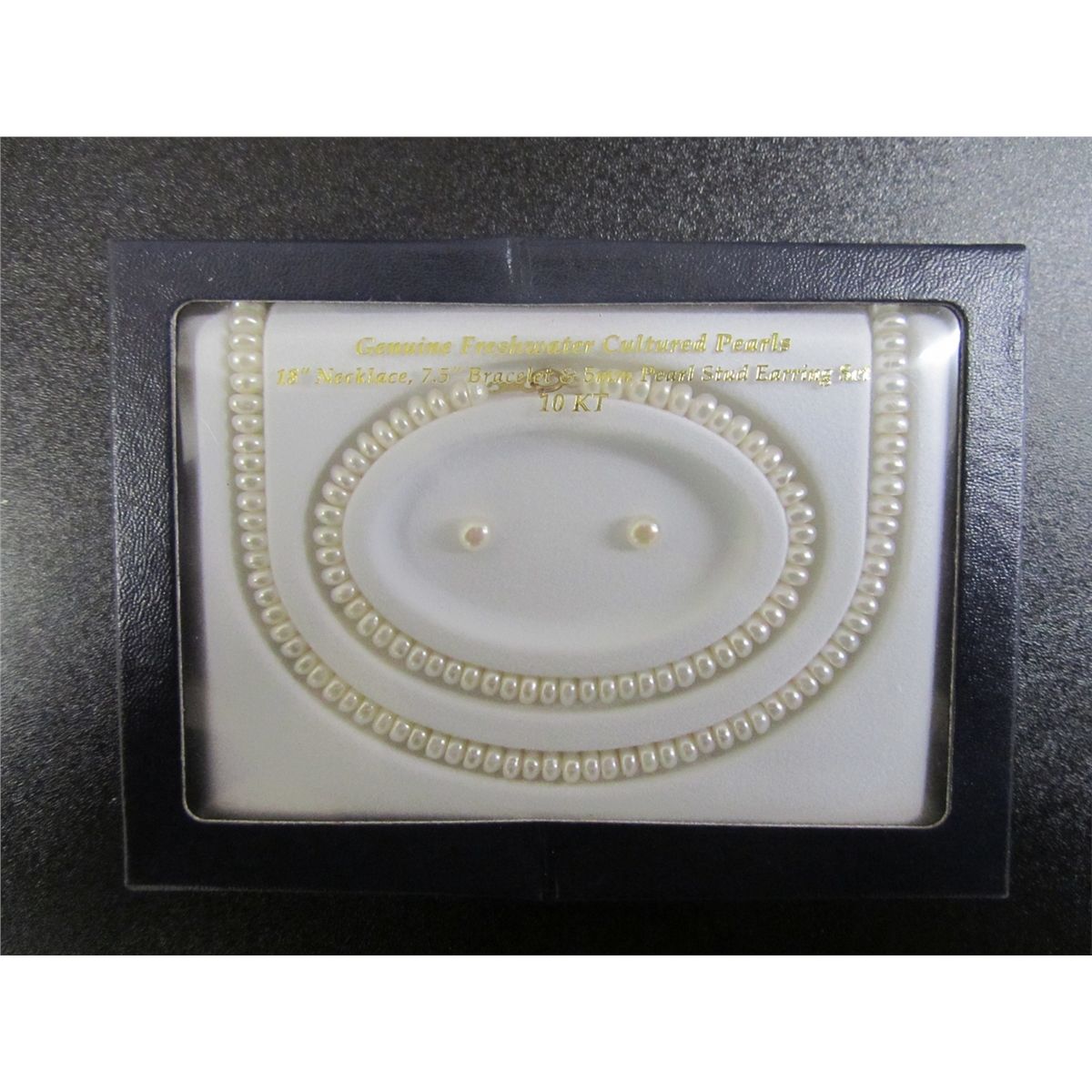 Genuine Freshwater Cultured Pearls - 18" Necklace, 7.5" Bracelet & 5mm Pearl Stud Earring Set - New In Box