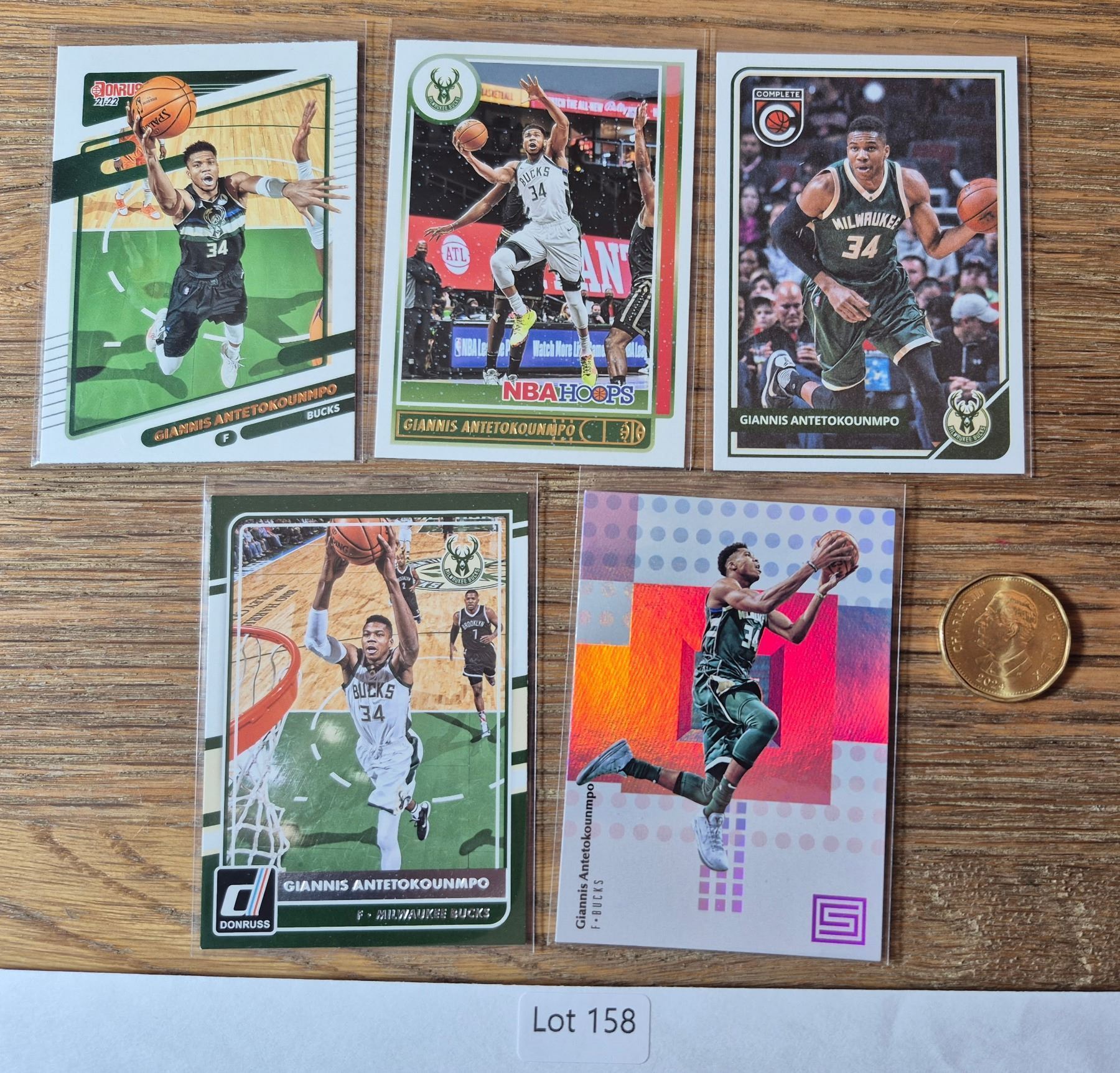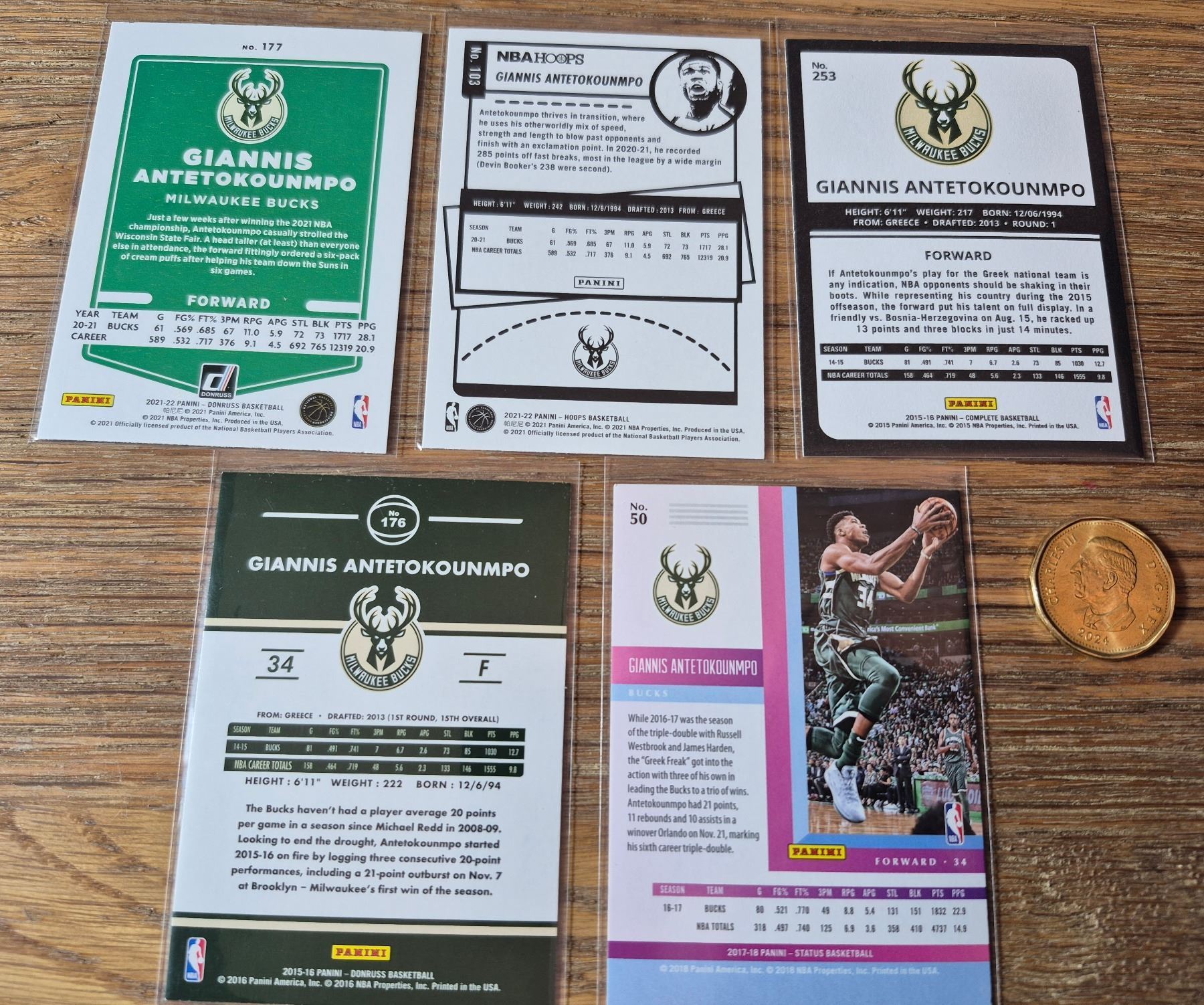 Includes 2021-22 Donruss Base, 2020-21 NBA Hoops Base, 2015-16 Panini Complete, 2015-16 Donruss Base, and 2017-18 Panini Status Base. Great mix of early and modern years.