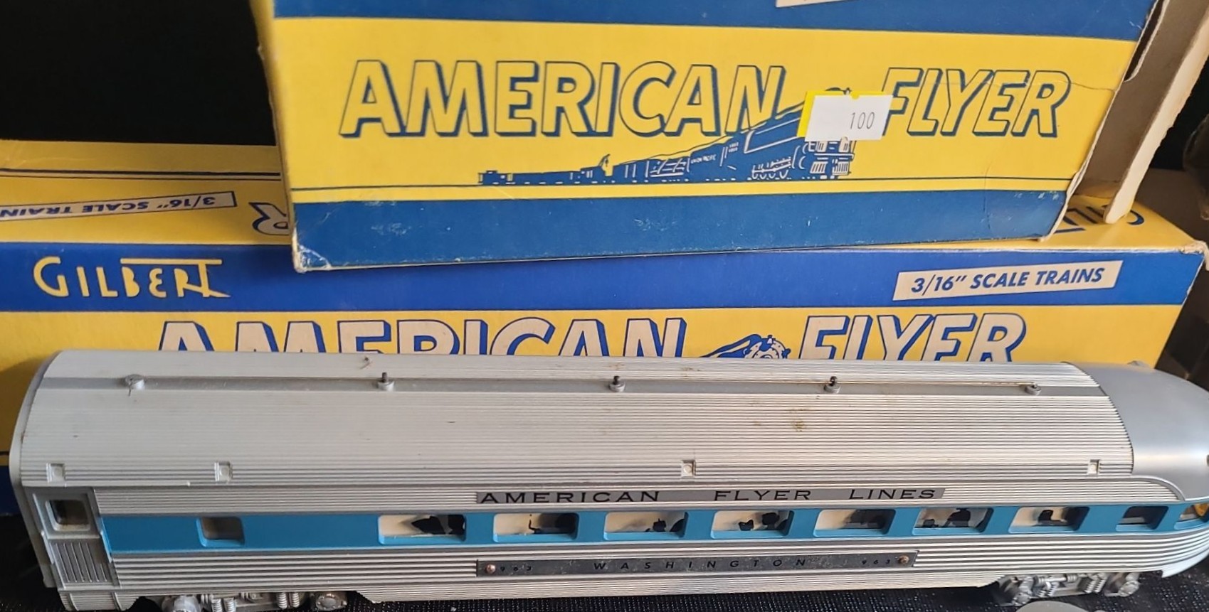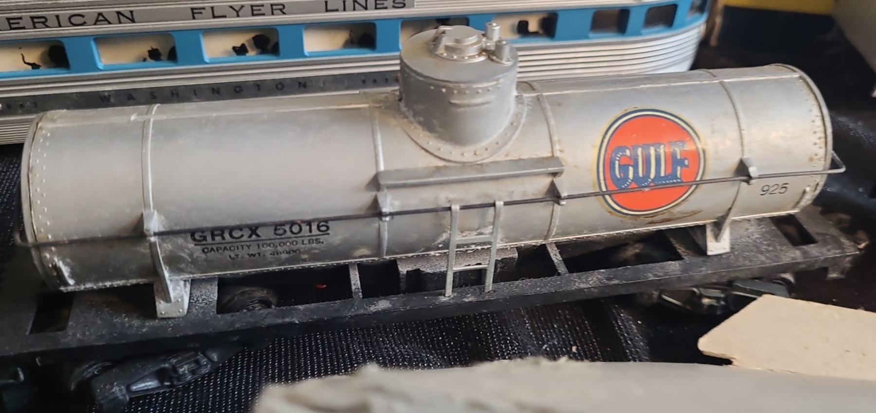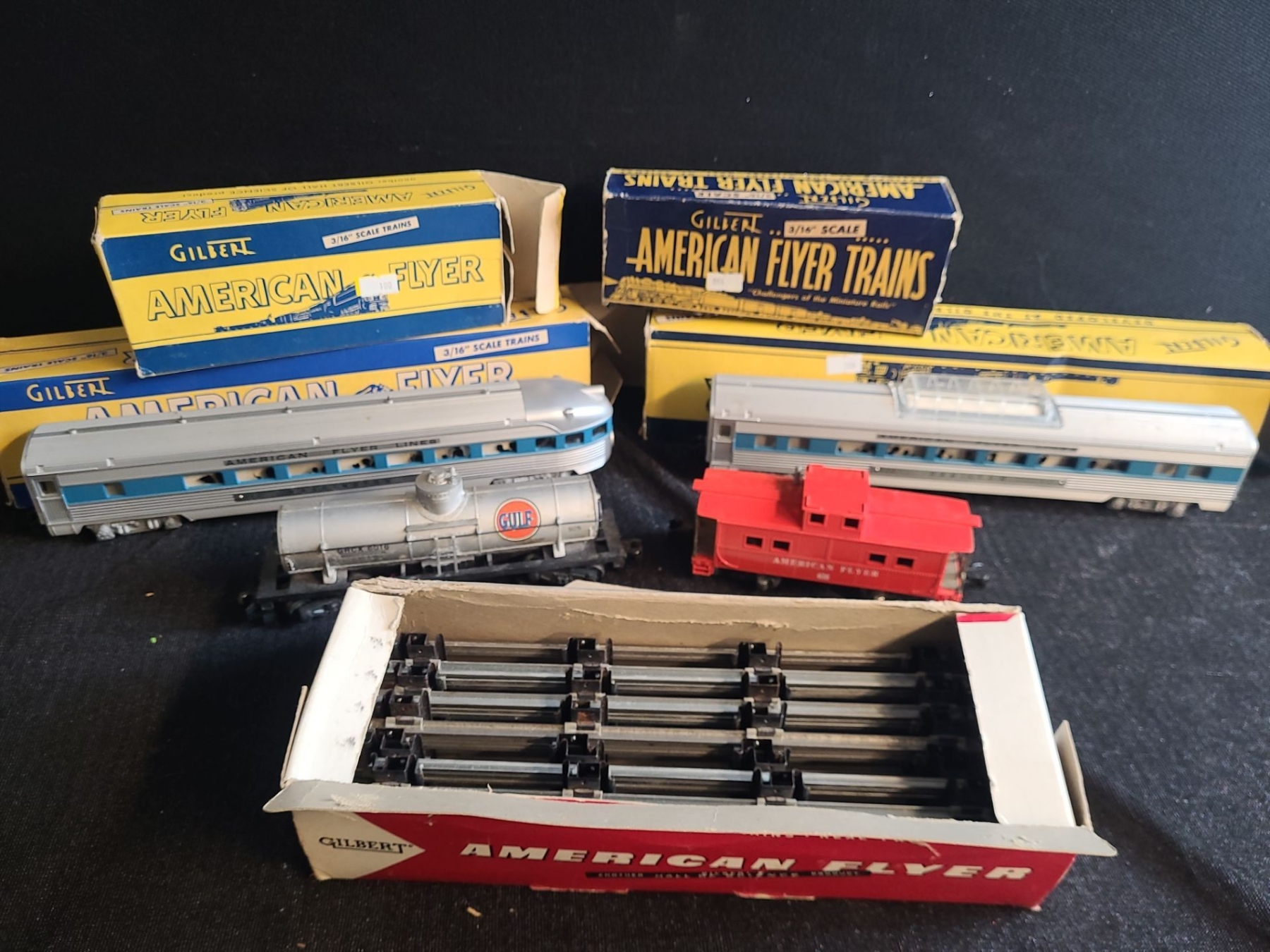 Gilbert American Flyer Model Trains: Passenger Cars, Gulf Tanker Car, Caboose, Straight Tracks