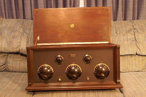 This was an extremely high quality 3-dial neutrodyne set. The tuning dials are unique to Gilfillan and are molded Bakelite. The Saturday Evening Post for November 1925 has a full-page ad for this radio featuring the original “Our Gang” Little Rascals. Over 2000 companies manufactured radios in the 1920s but only a few still survive today. Gilfillan is a manufacturer of RADAR systems and is a division of ITT. no tubes