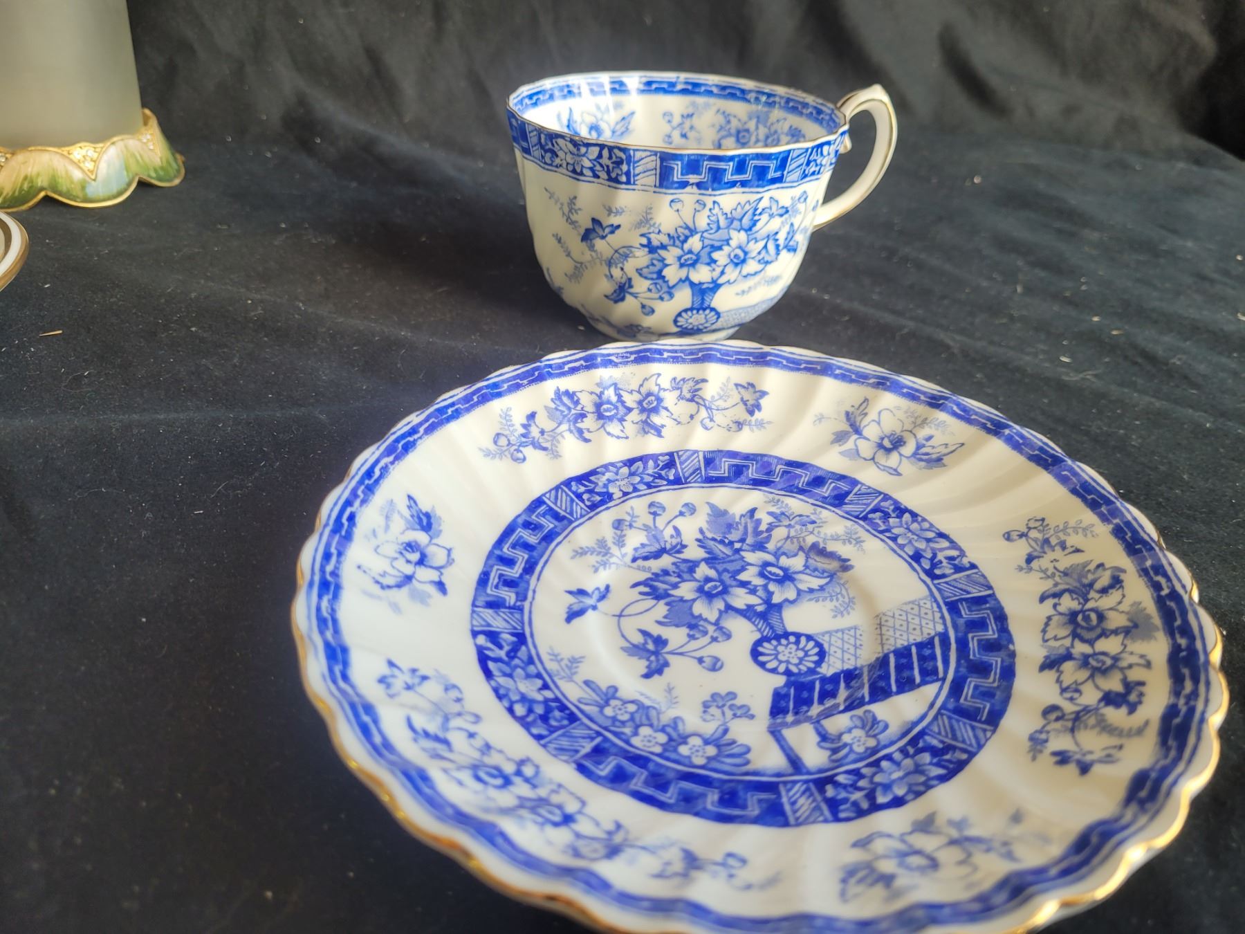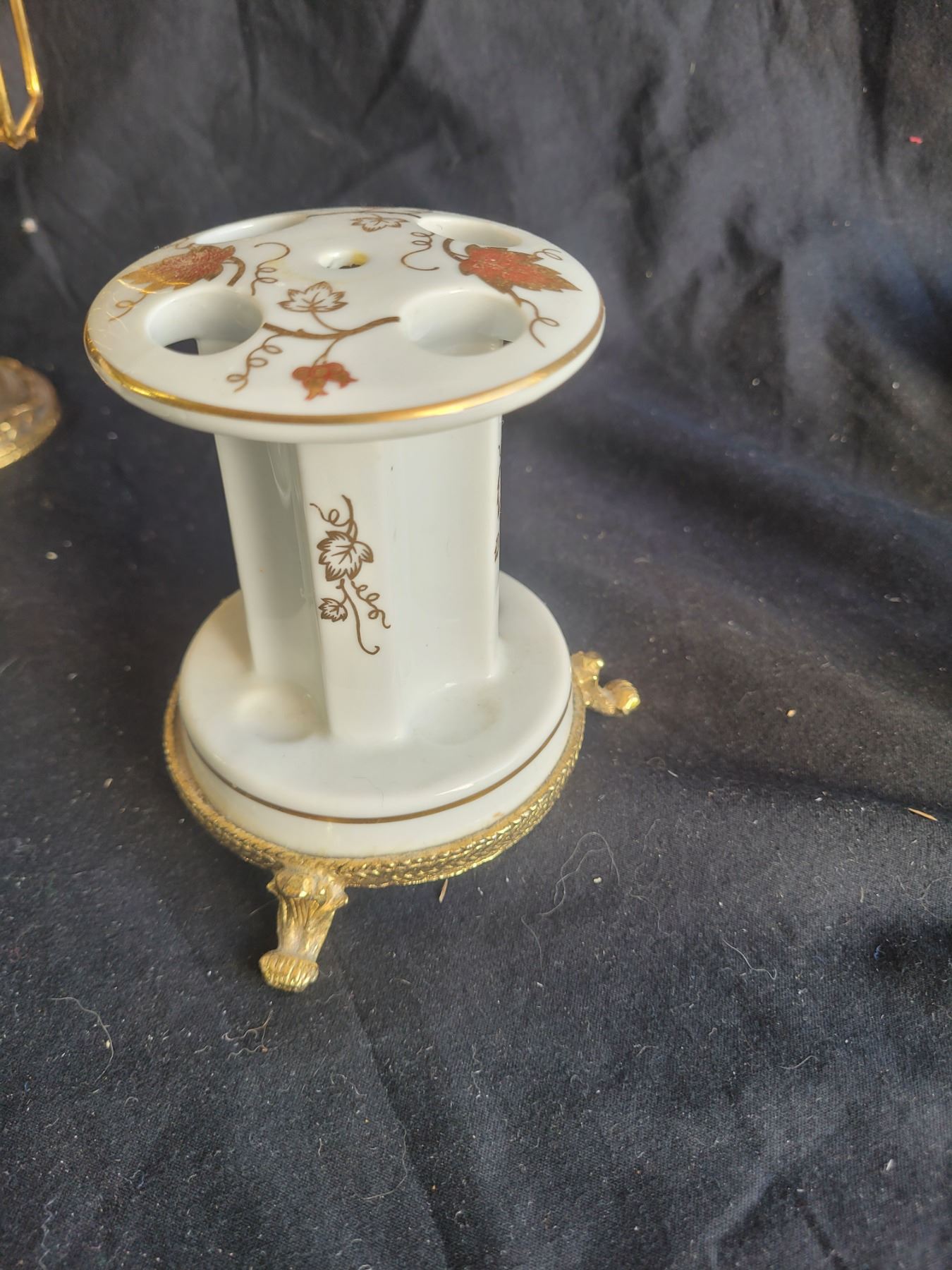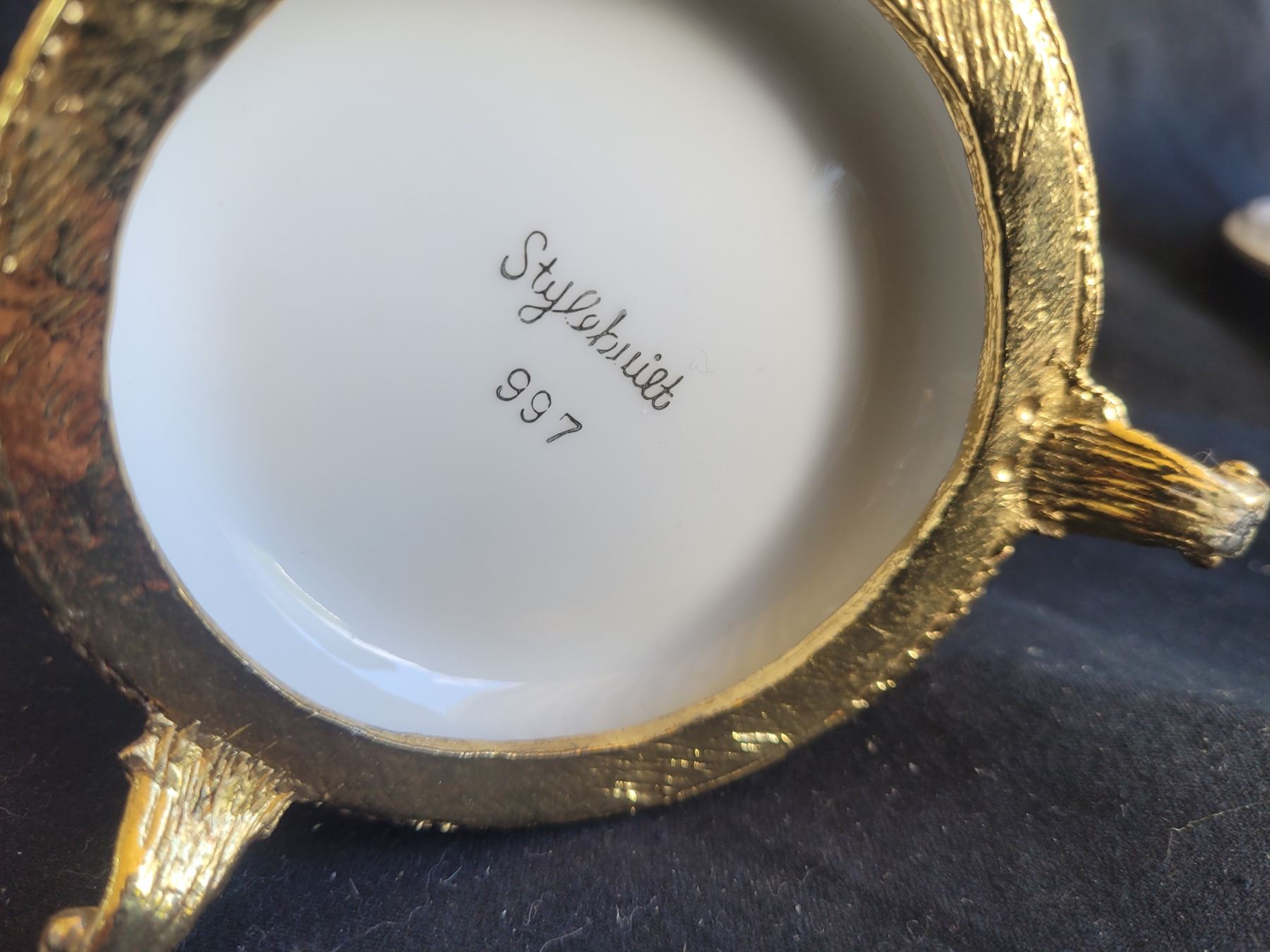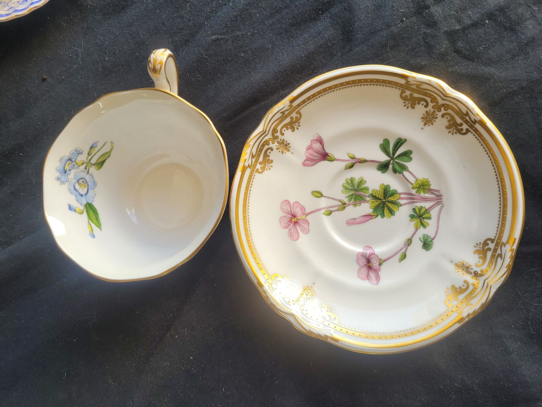 Spode teacup and saucer, Gladstone cup and saucer, porcelain decor, gilt napkin stand and porcelain soap holder and more. Pickup at 9 am