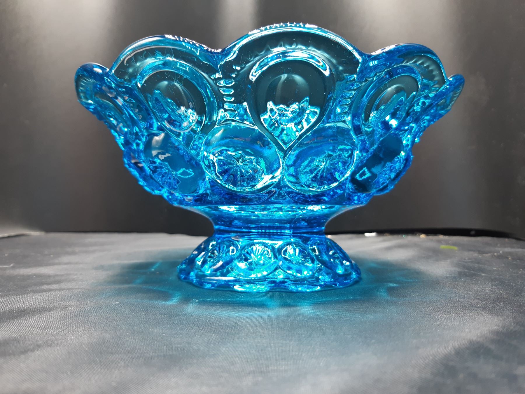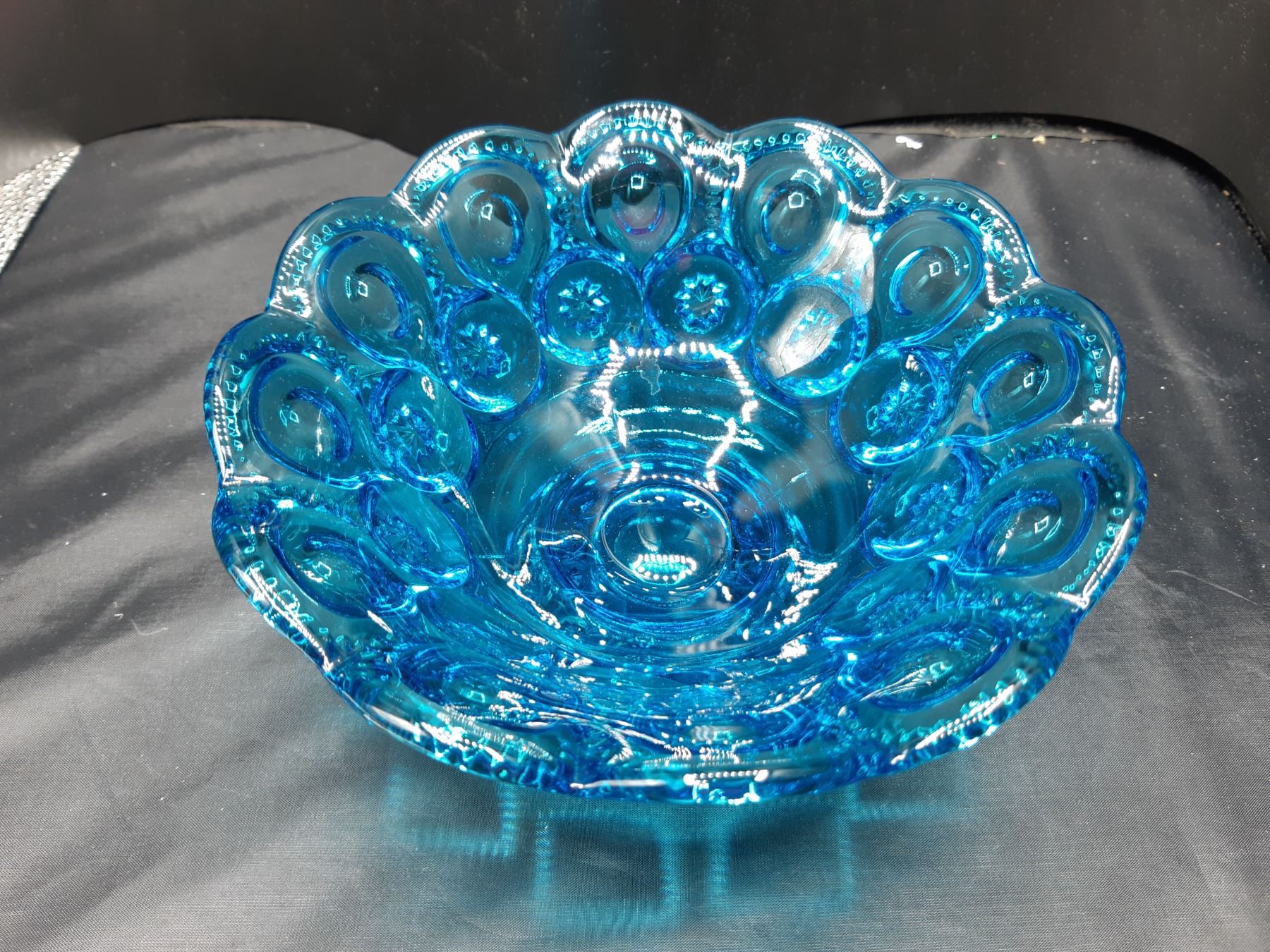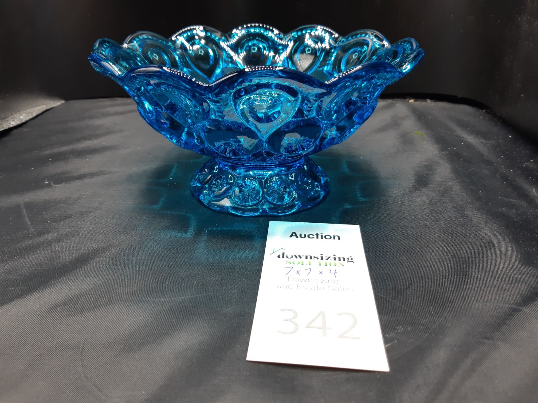 Blue glass bowl with scalloped edge 7x7x4 Pickup at 9 am