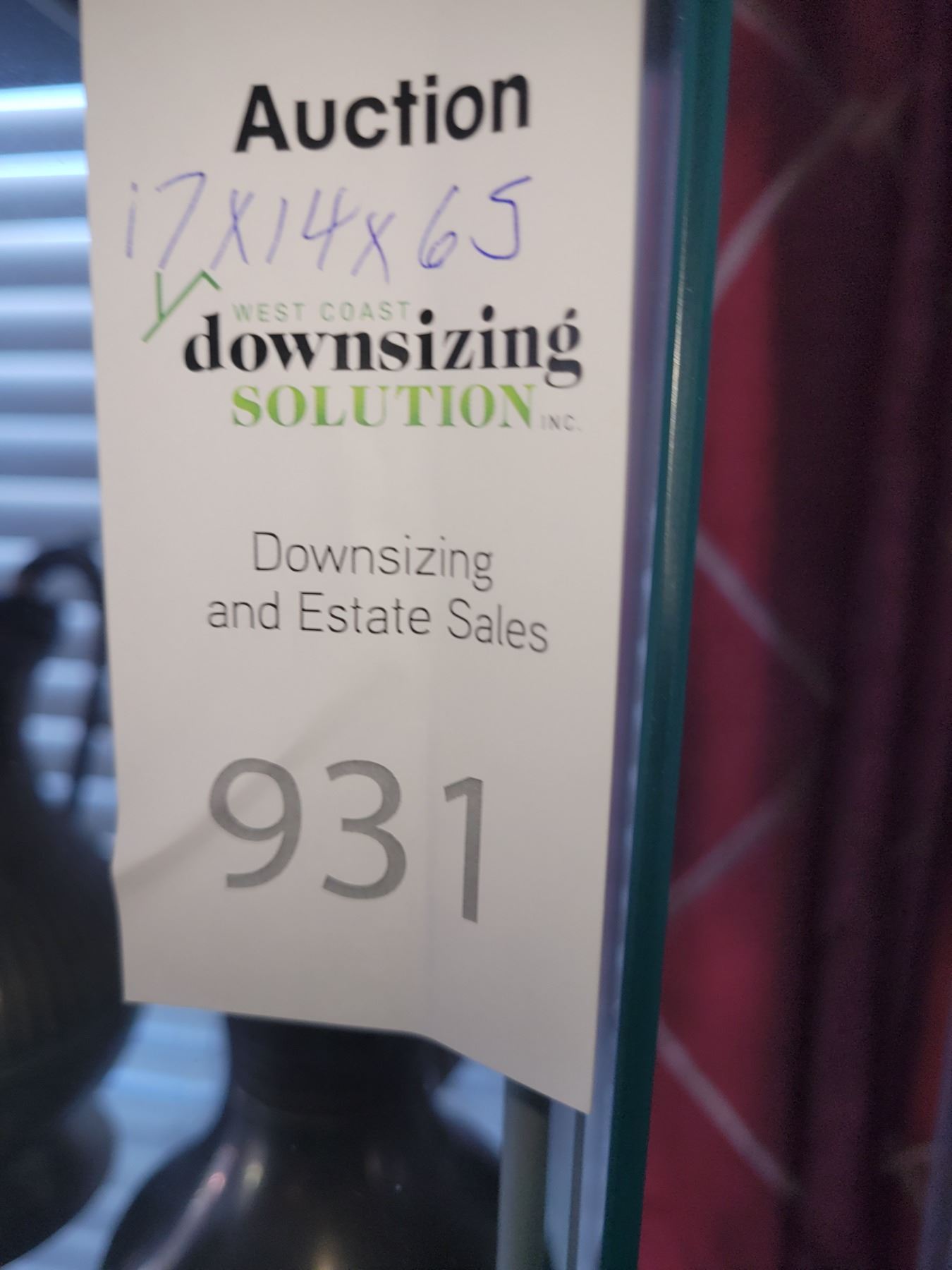 17x14x65. Contents not included. Located upstairs. Bring help to move. Category C. Pick up at 12:30.