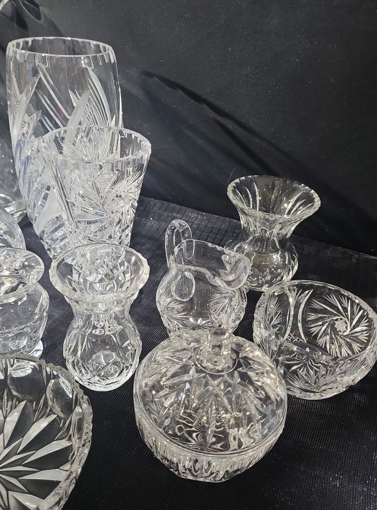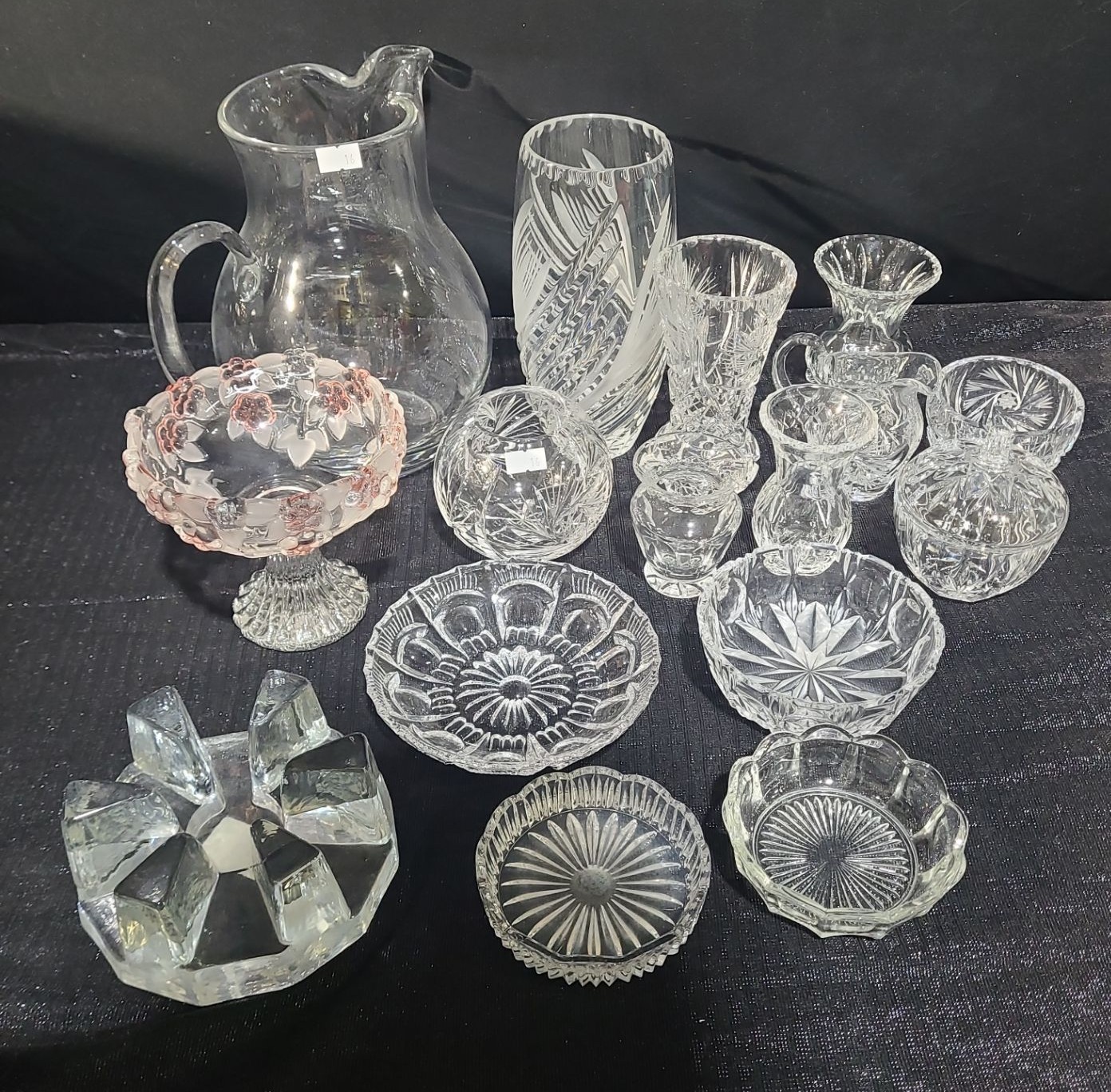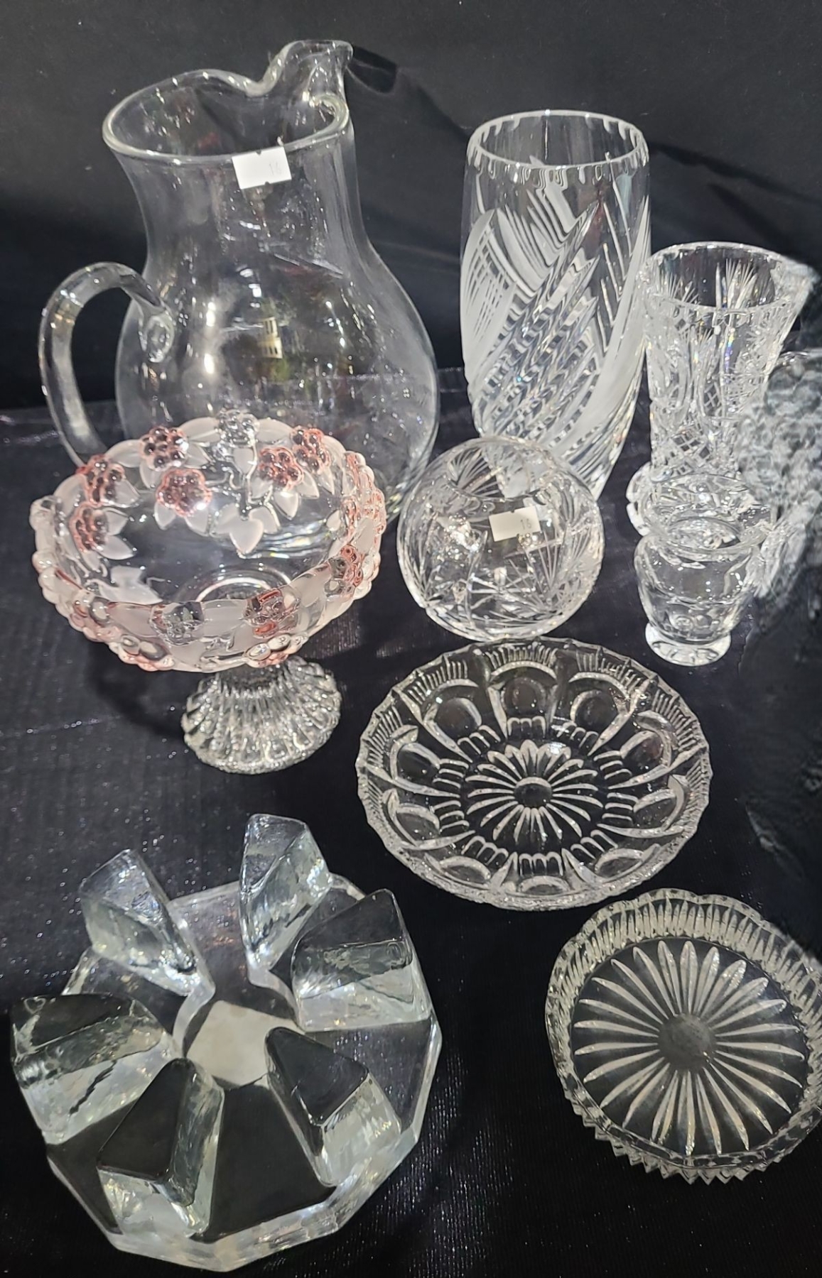 Glass Pitcher 9 T, Geometric Glass 5.5" Base, 2.5 T, Vases- Tallest: 8 T, Small Bowls and More!