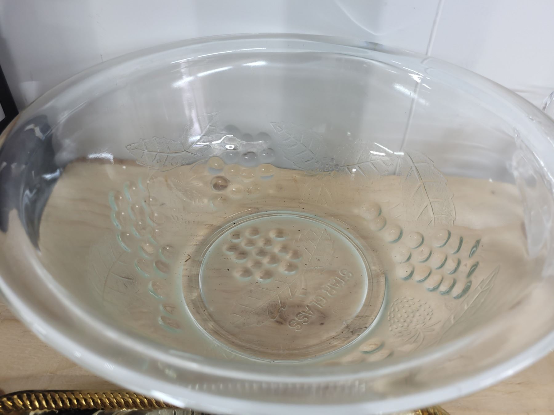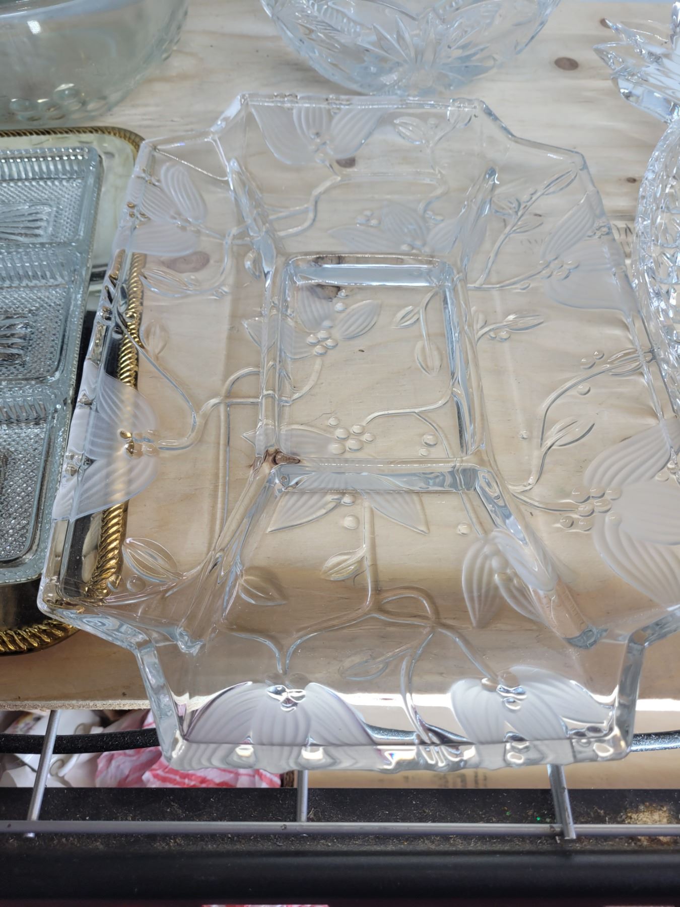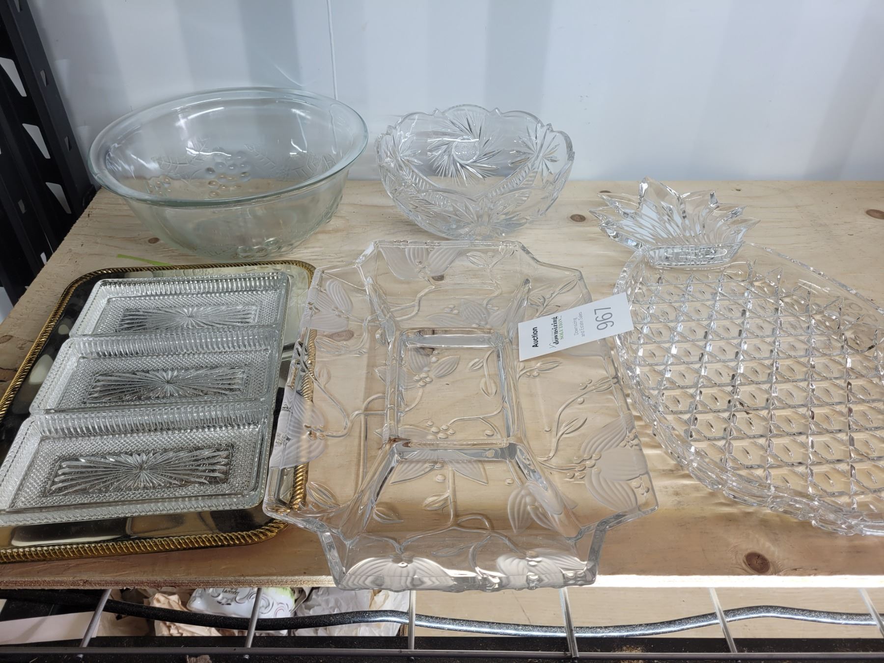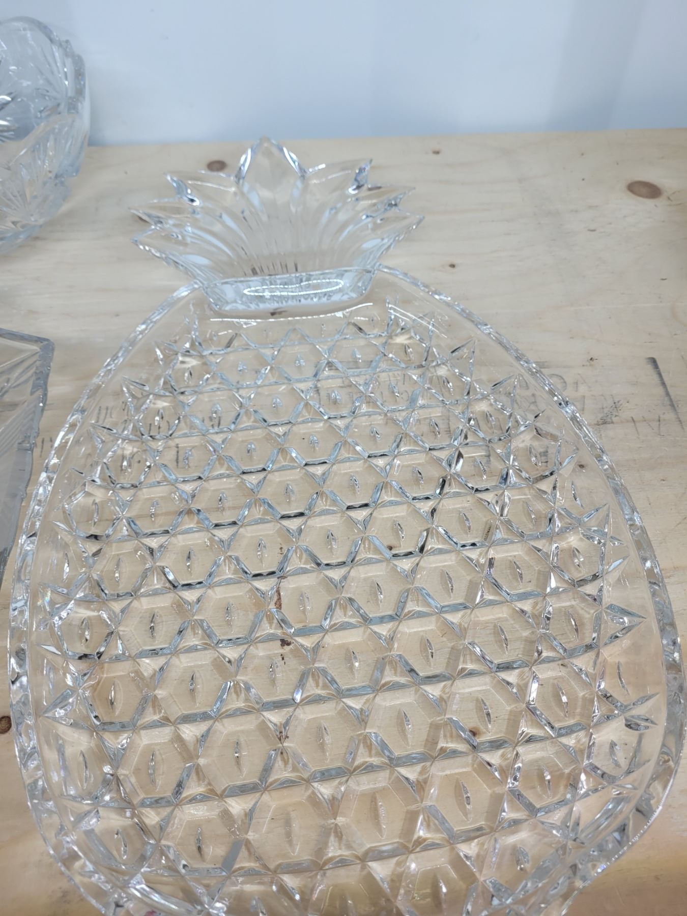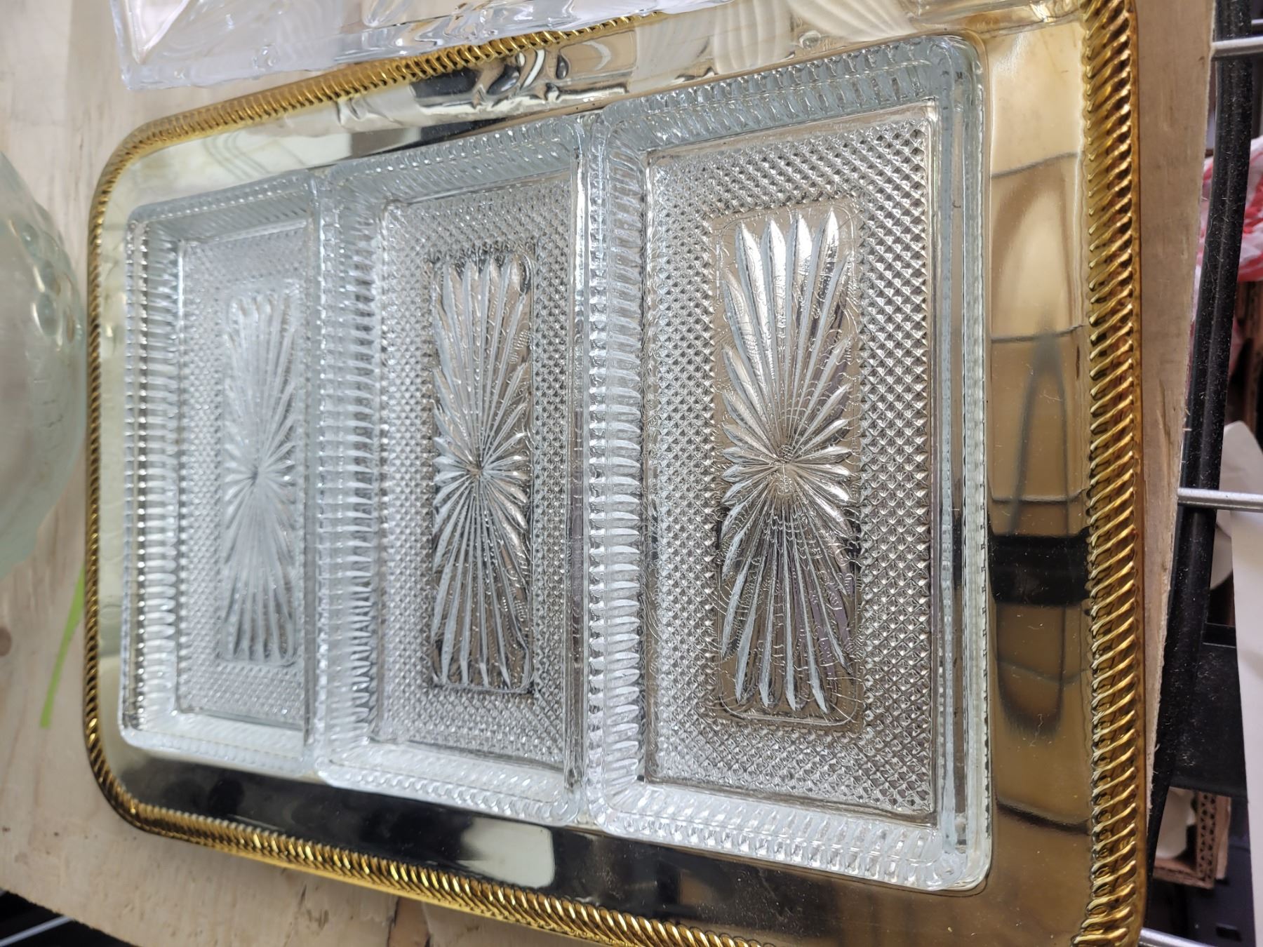 Pineapple Glass Serving Tray, glass serving bowls, metal tray with 3 glass dividers. Pickup at 9 am