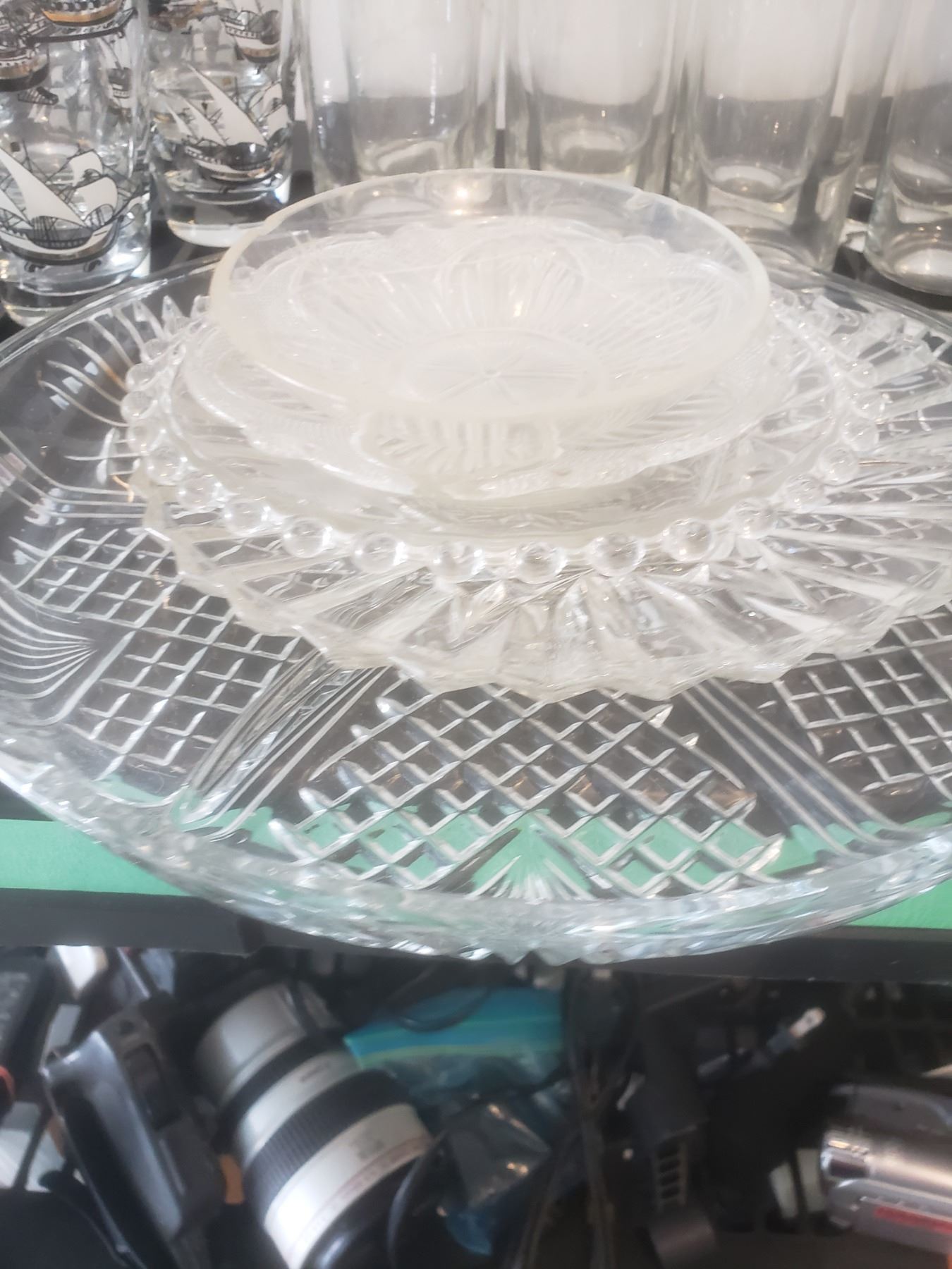 Assortment of glass serving dishes, glass tumblers, glass Fish themed cookie jar & more. Please bring packing material and pickup 9:00 am - 10:00 am