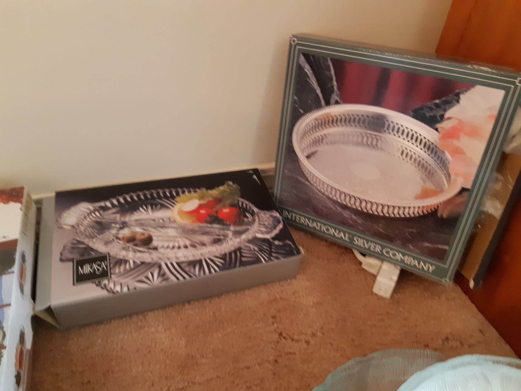 Collection of glass serve ware, platters, plates,picture frame. Pick up at 10:am
