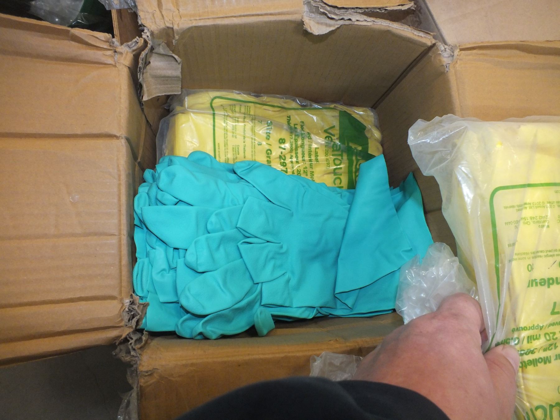 you get 4 Dozen of yellow latex gloves size 9, and 11 dozen green latex gloves size xl...new