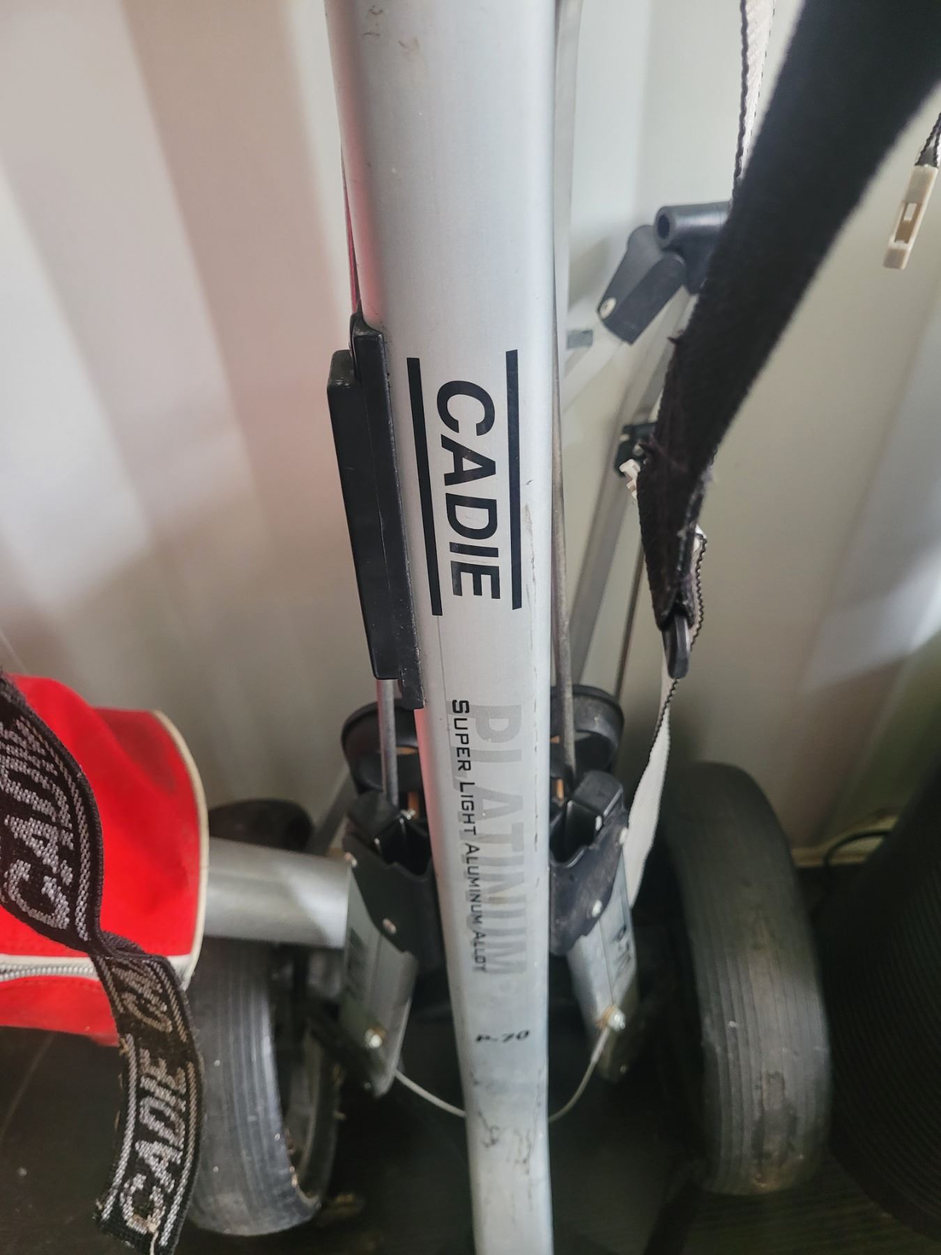 Platinum golf cadie, assortment of clubs & dtivers, bag of golf balls. SC4 Pickup at 11 am