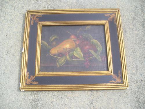 Framed fruit basket print.