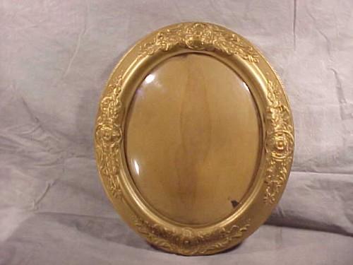 Gold painted oval frame w/convex glass