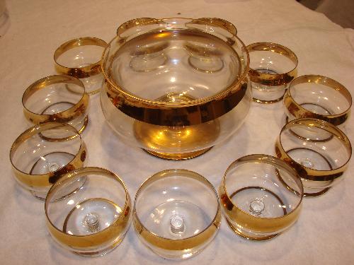 Gold rim shrimp cocktail serving set