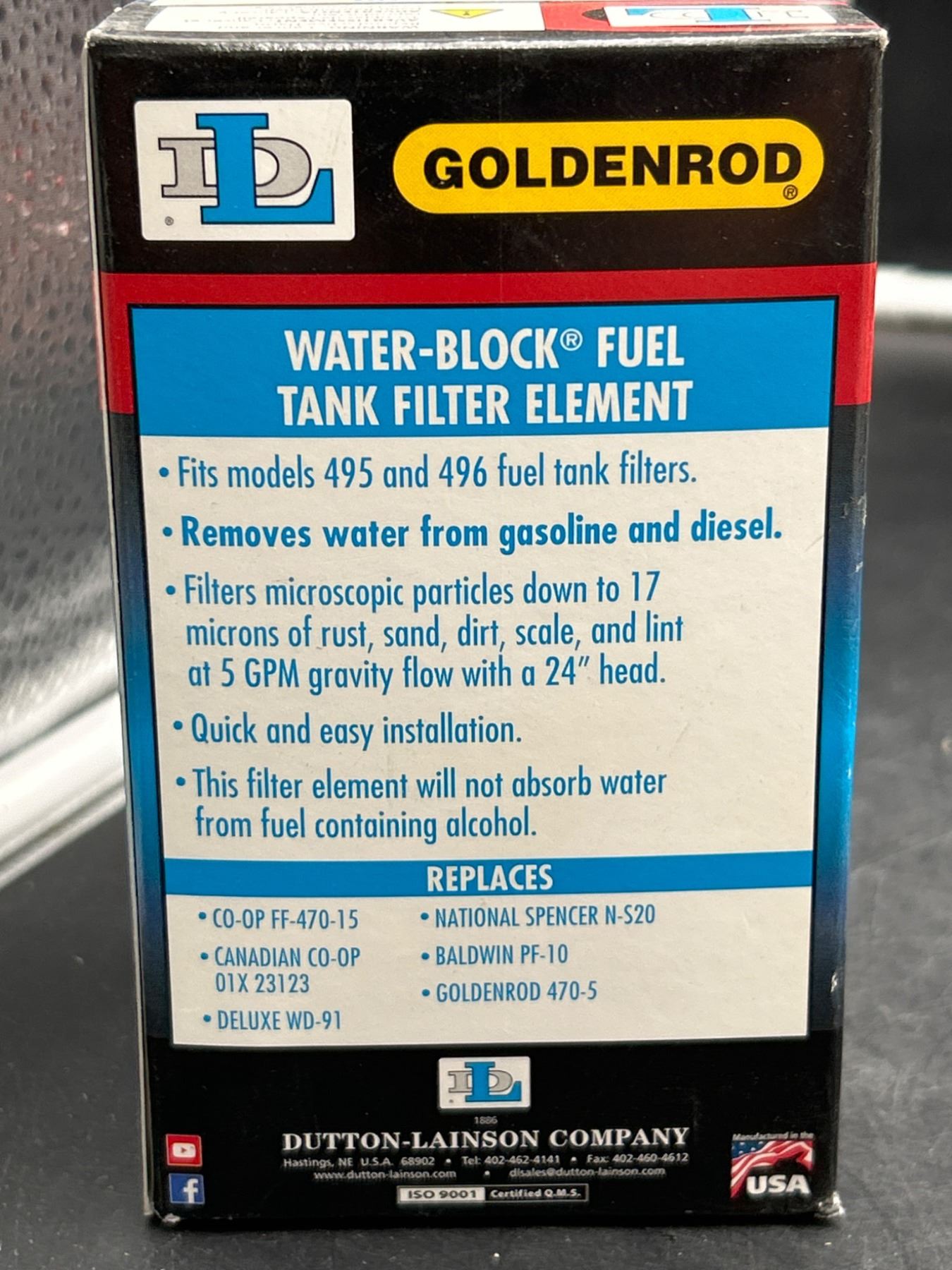 Goldenrod 496-5 Water-Block Fuel Tank Filter Element for Models 495 and 496