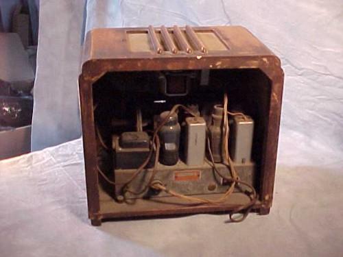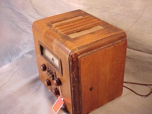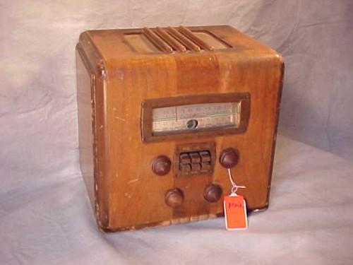 Goodyear broadcast band table radio, ser# 102 507. 14.5x11x13 walnut cabinet w/celluloid face & knobs