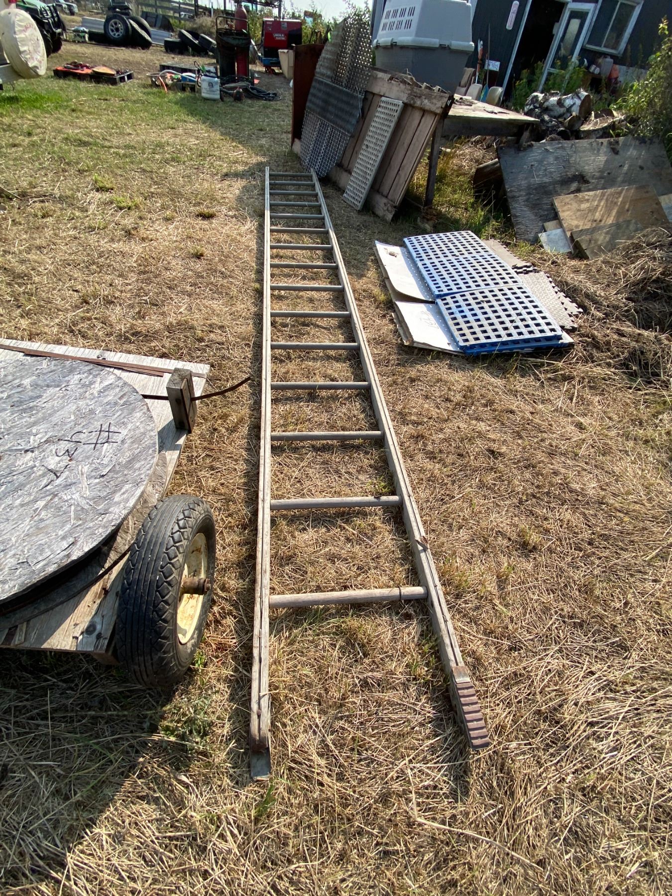 Grating, Wood Ladder, Blue Square Flooring & Metal Shield & Two Wheel Cart c/w Banding