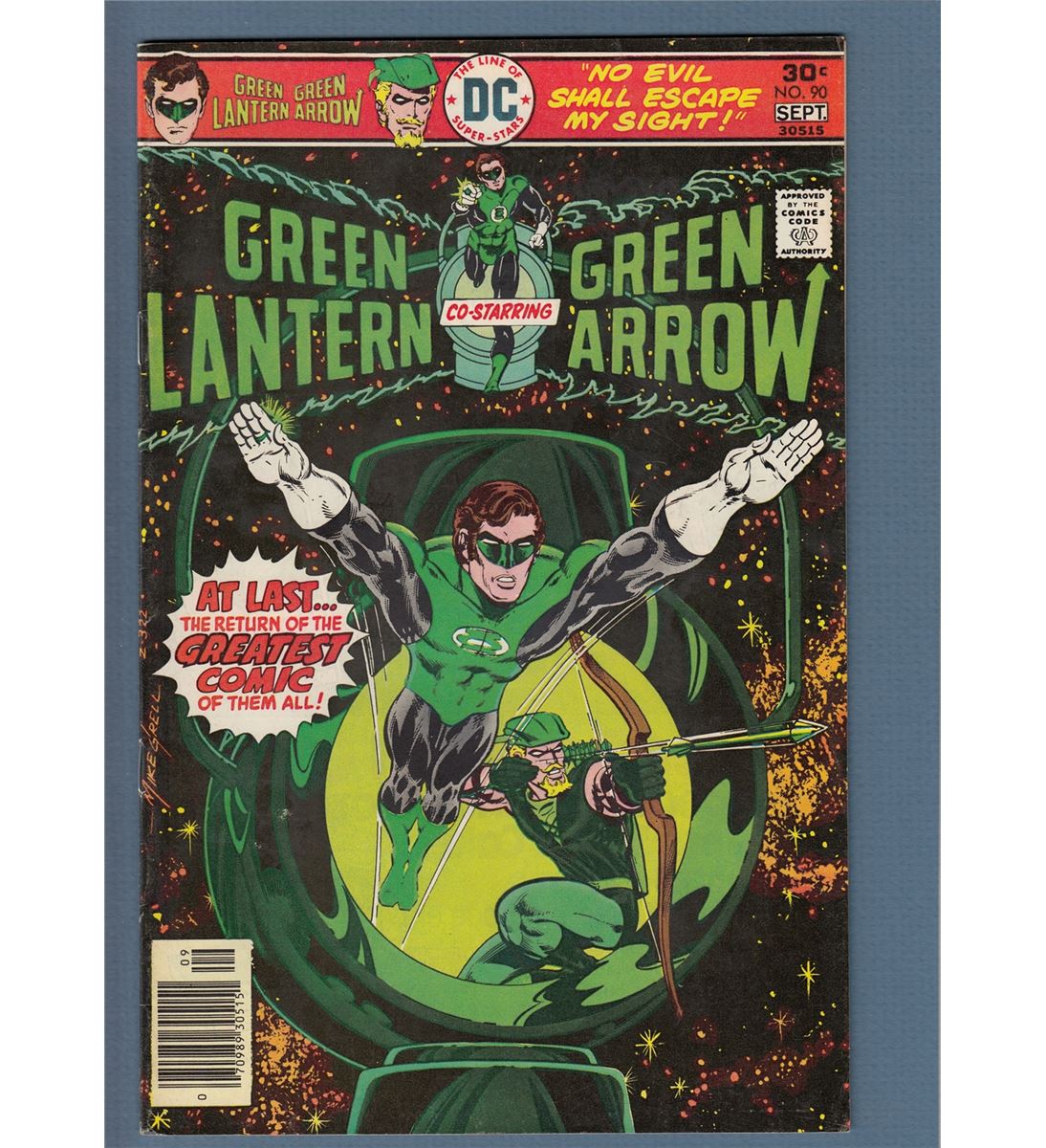 Green Lantern #90(1976) 3rd Green Lantern/Green Arrow team-up begins, Mike Grell(art)high Mid Grade Comic