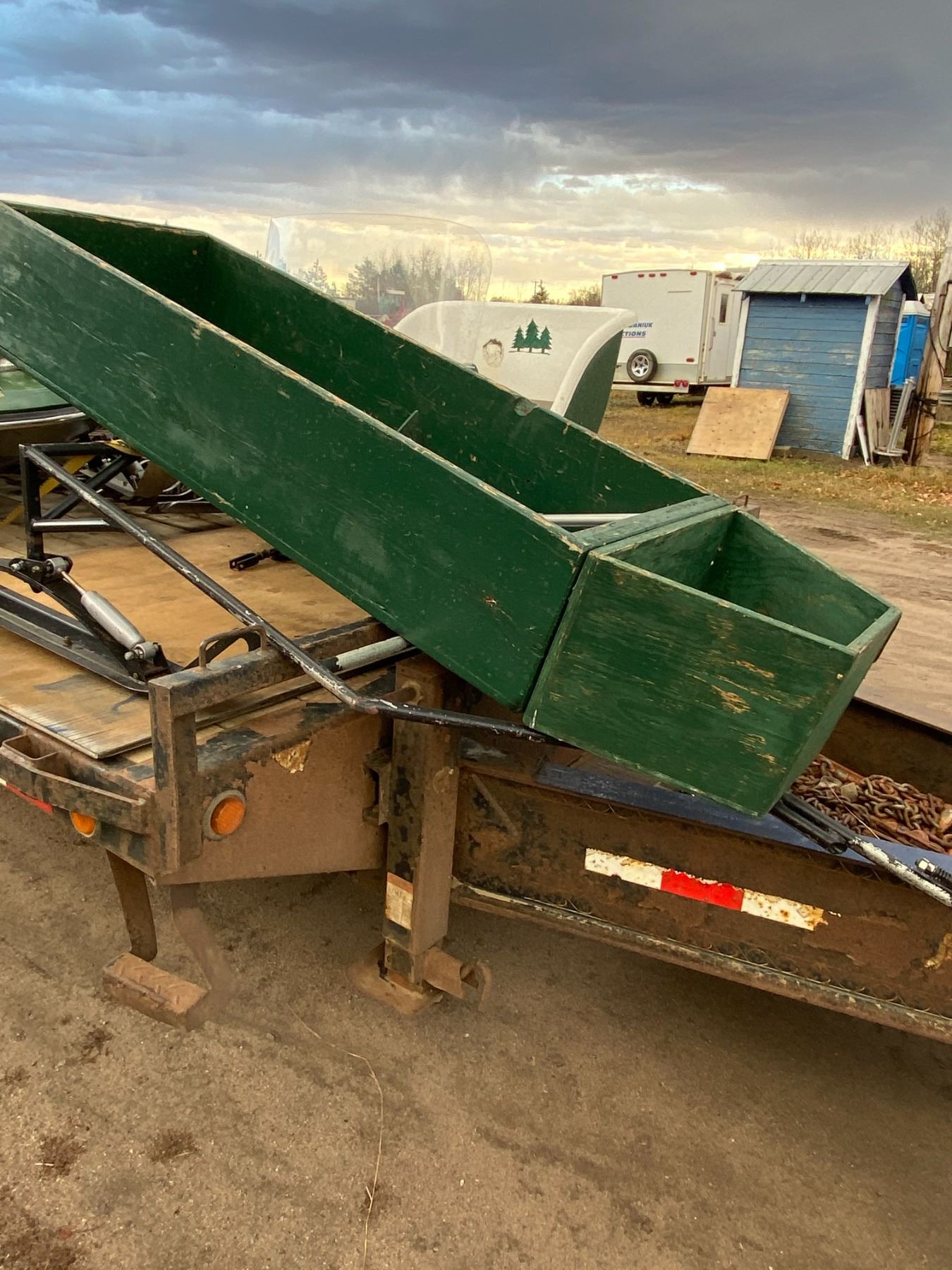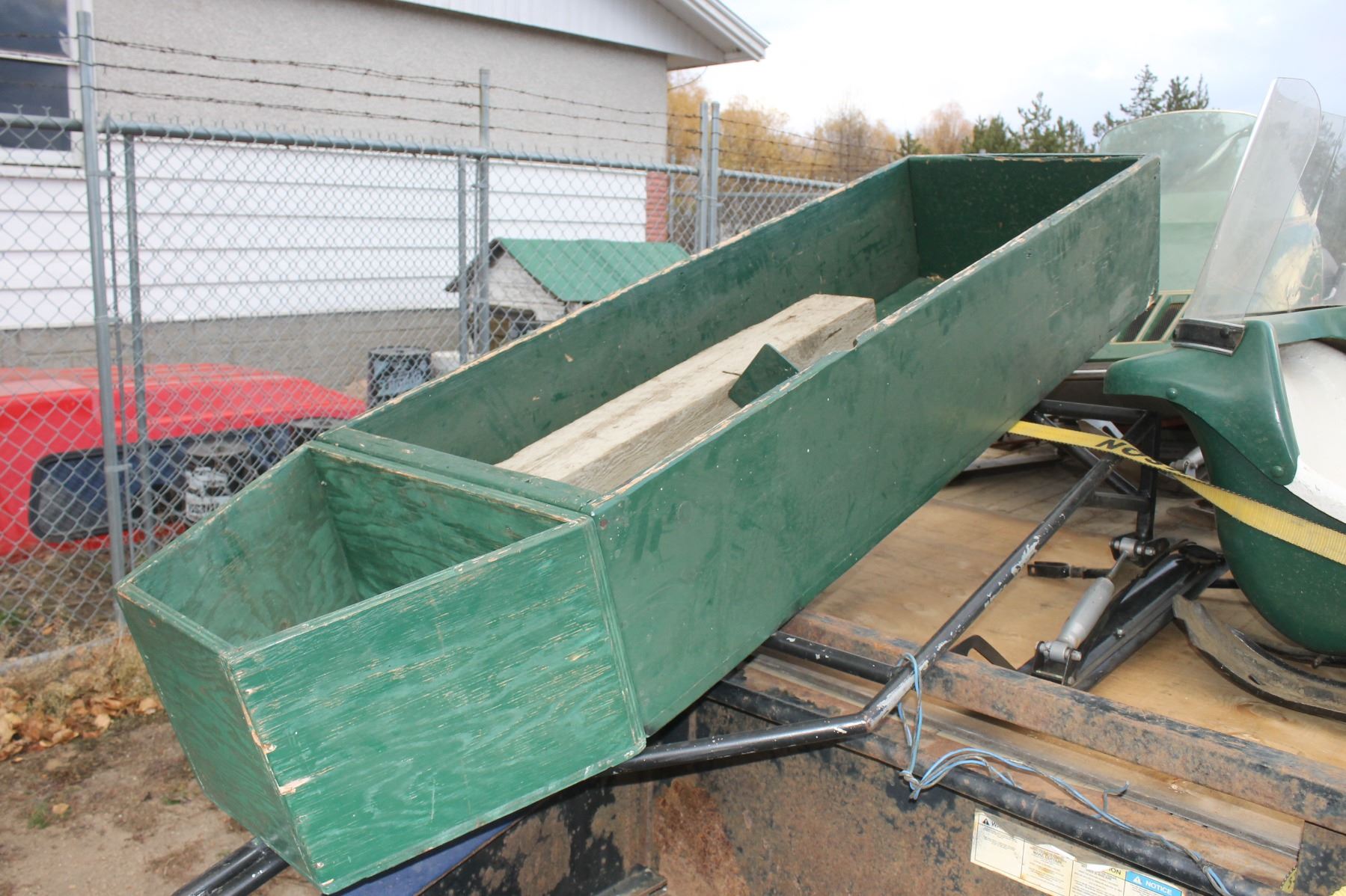Green wood icing fishing sled From Estate PH Janet (780) 991 7720