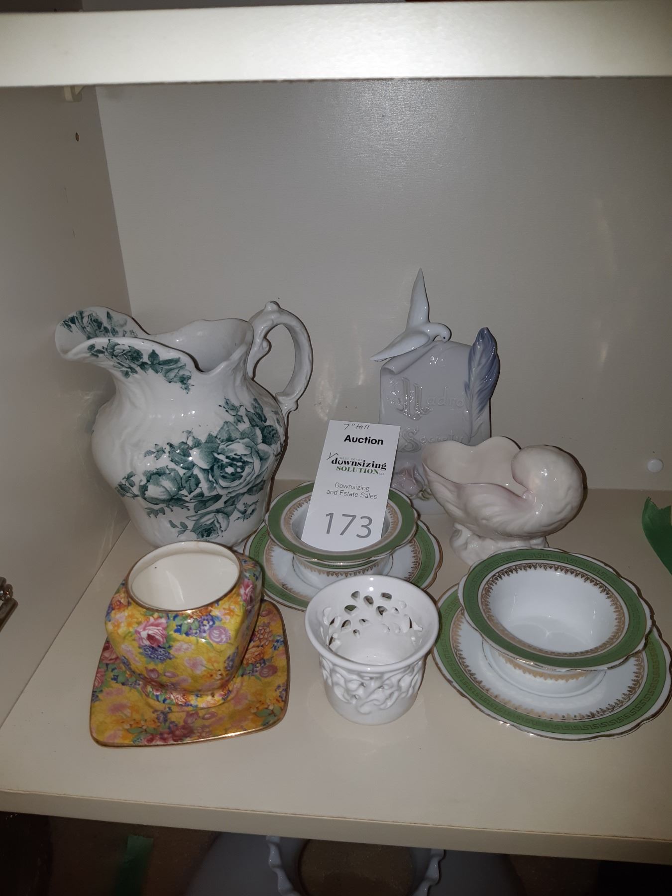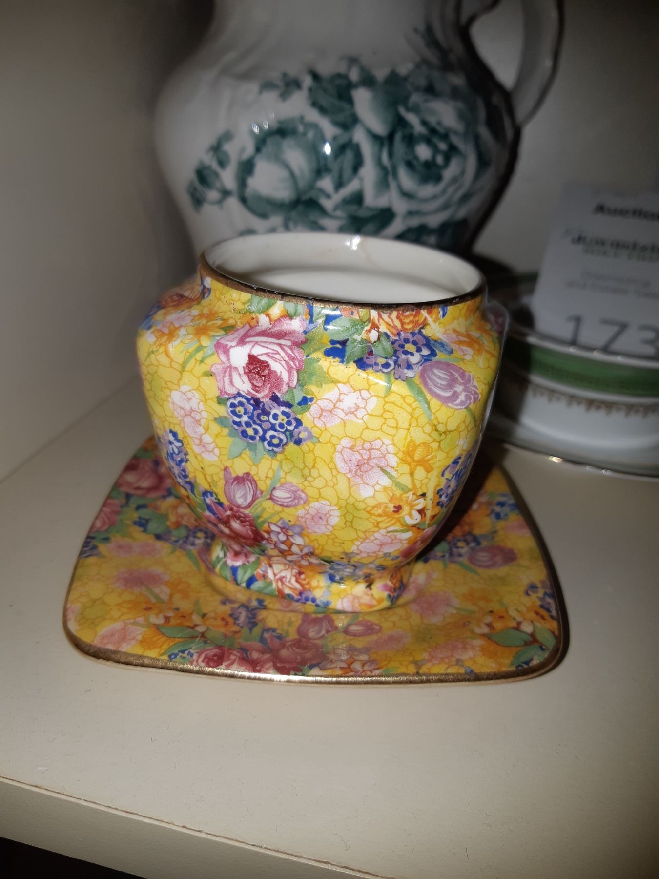 Grimwades square saucer and 4" jar. Chathams 7" jug, 2 saucers and open bowls from Imperial China Austria. Carlton Shellwate. And more. Bring packing and pickup at 9 am