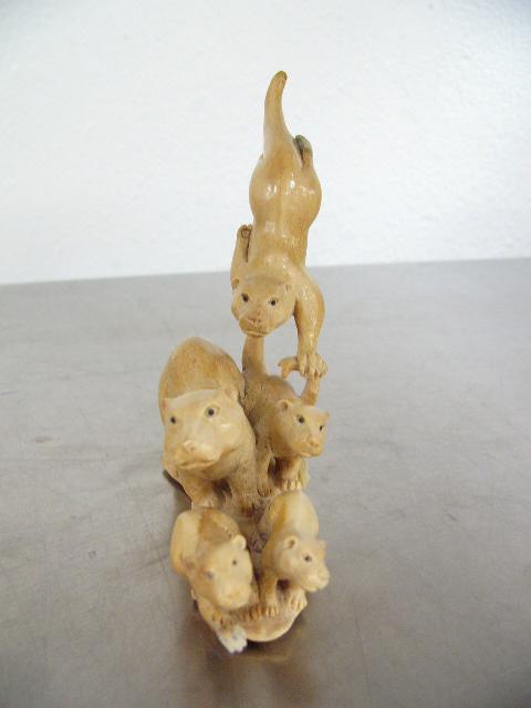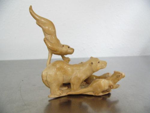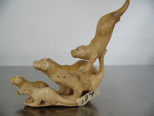 Group of 5 otters with one fish carved out of bone 6"- imported, not Alaskan ()