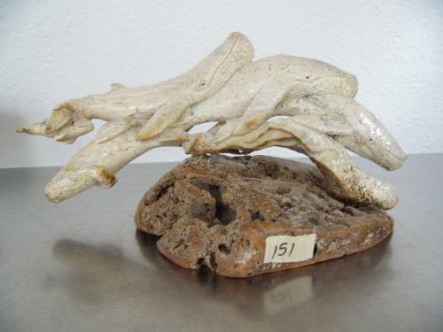 Group of 5 whales carved out of bone 9"- imported, not Alaskan ()