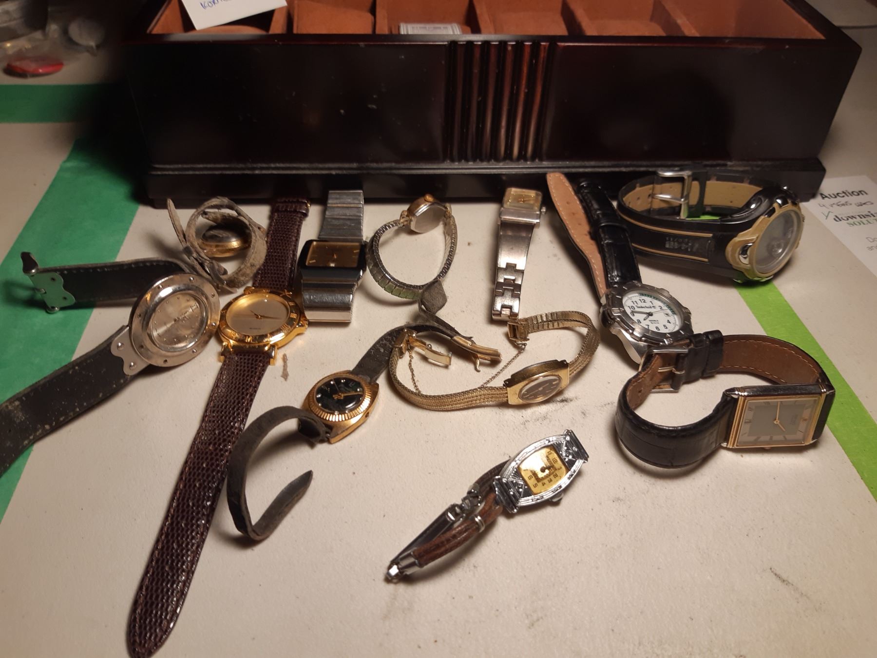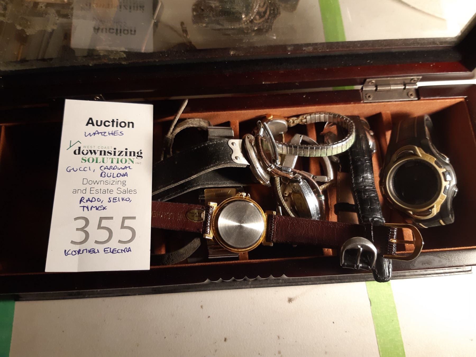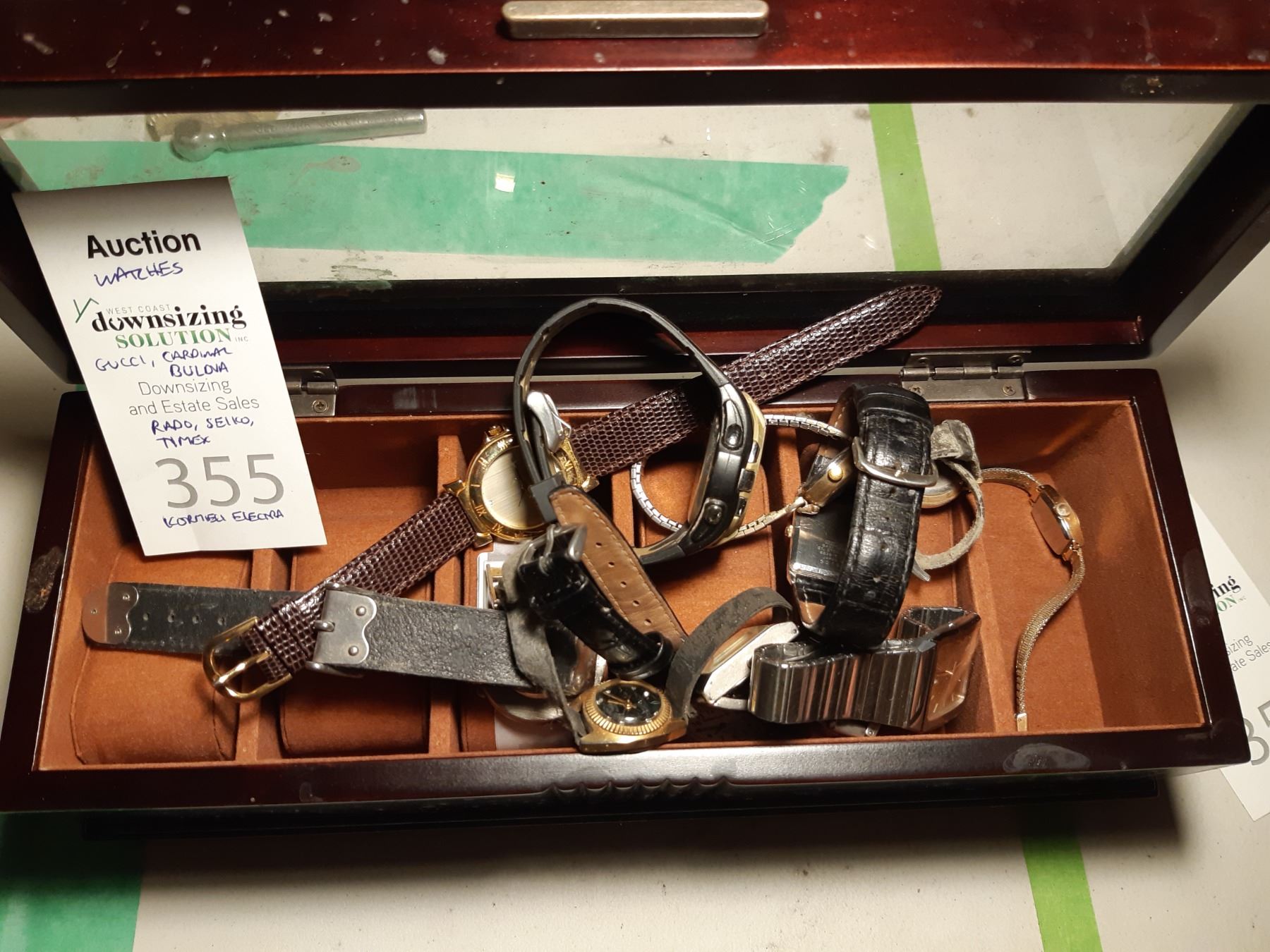 Bulova, Raspdo, Timex and more men's & Ladies wrist watches. Untested. glass watch display cas Pickup at 10 am at