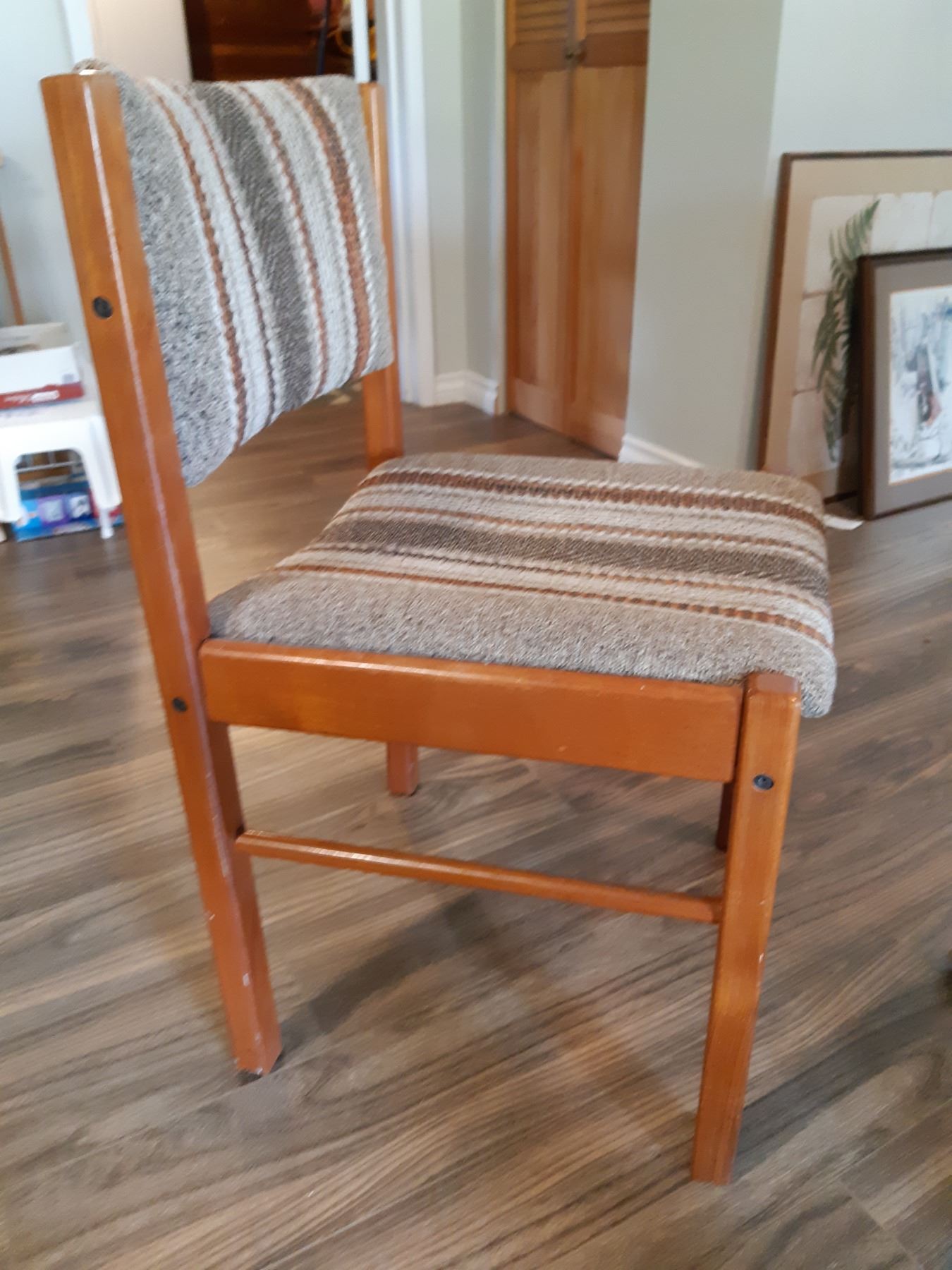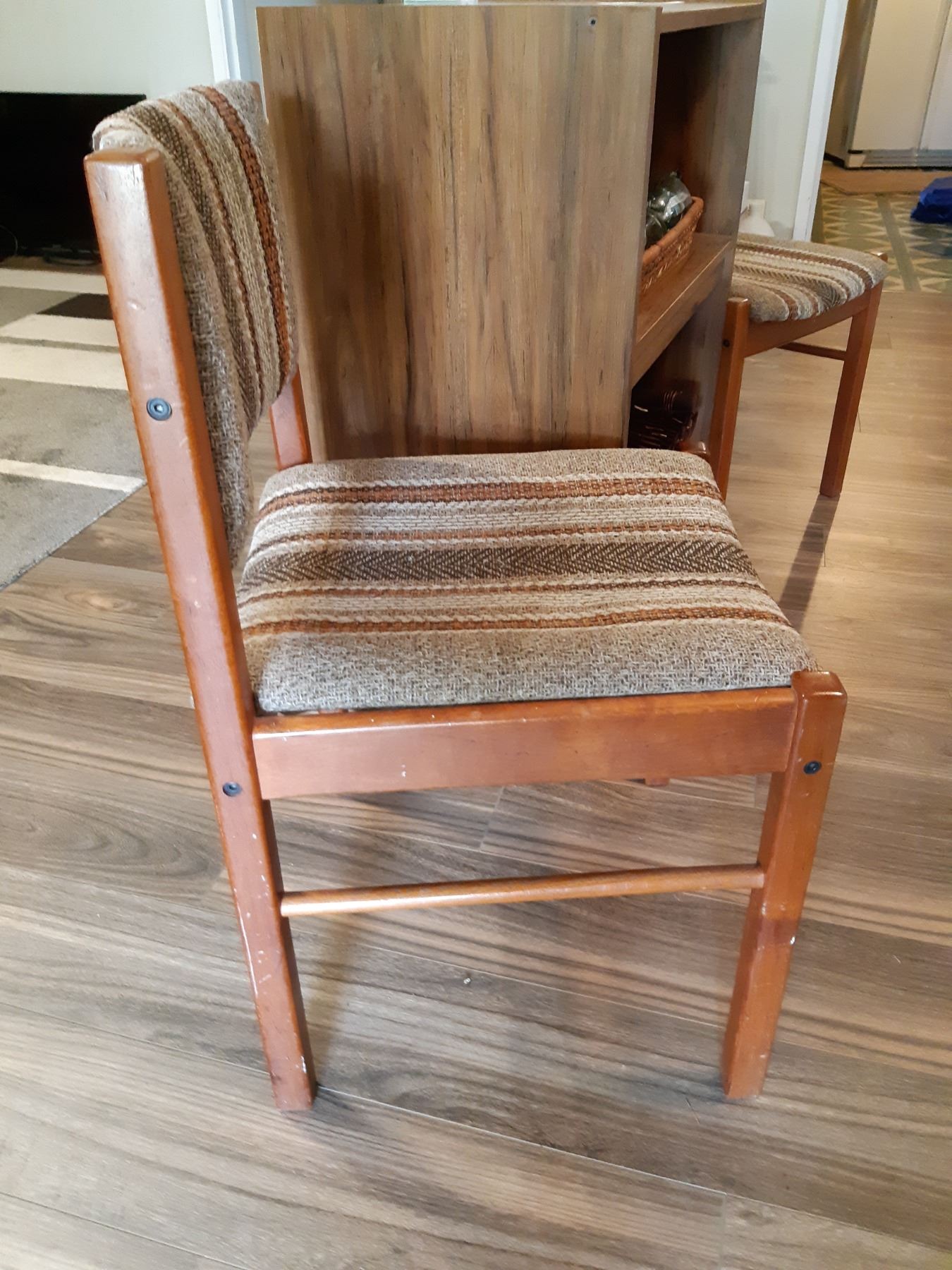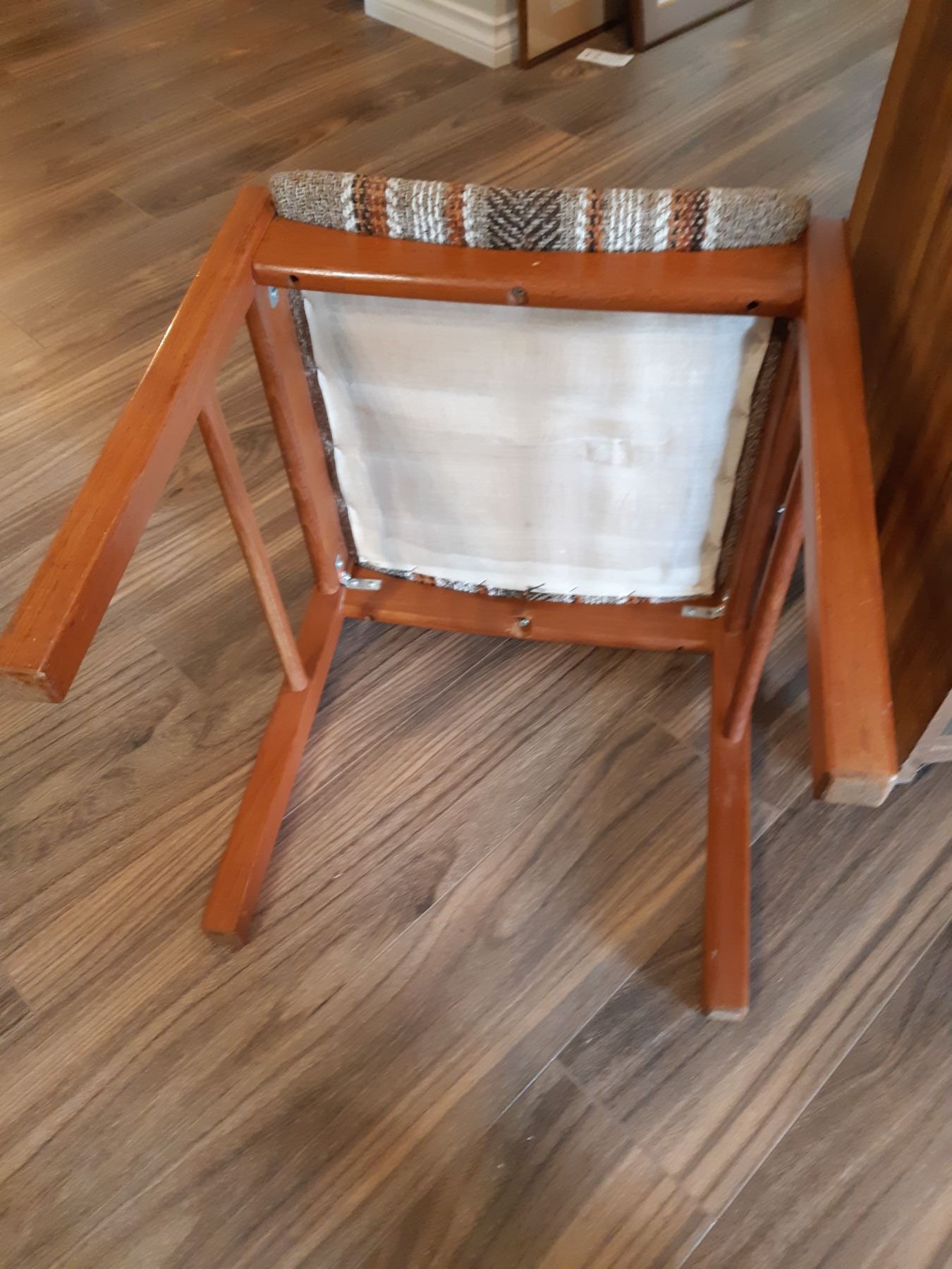 Rolling cabinet 23x16x34 note scratches, basket and plastic stemware. 2x vintage chairs with tilt backs.note scratches. Pickup at 10 am