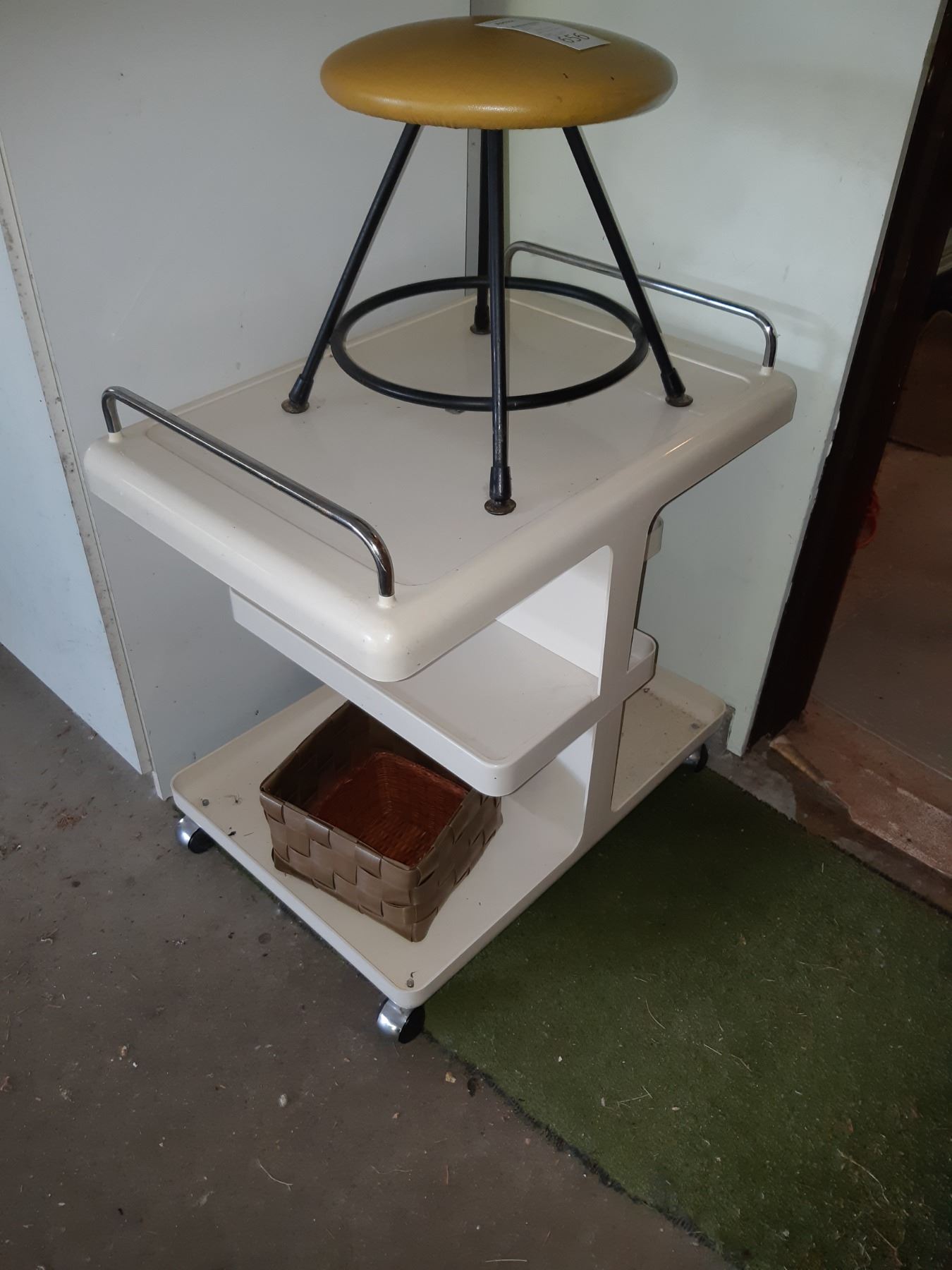 Guzzini rolling cart 25x18x26 and stool Pickup at 9 am