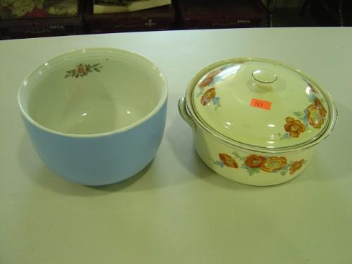 LOT OF TWO HALLS COVERED CASSEROLE AND BOWL (CASSEROLE STAINED INSIDE)