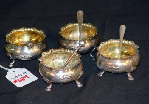 HALLMARKED FOOTED MASTER SALTS WITH SALT DIPS- 4 X THE MONEY