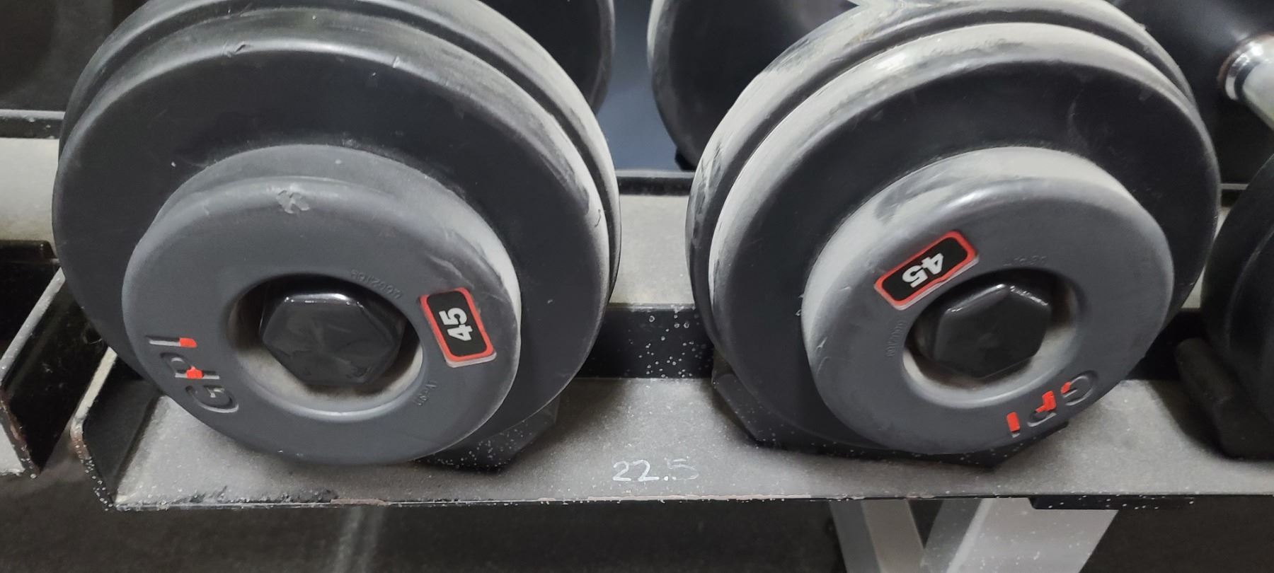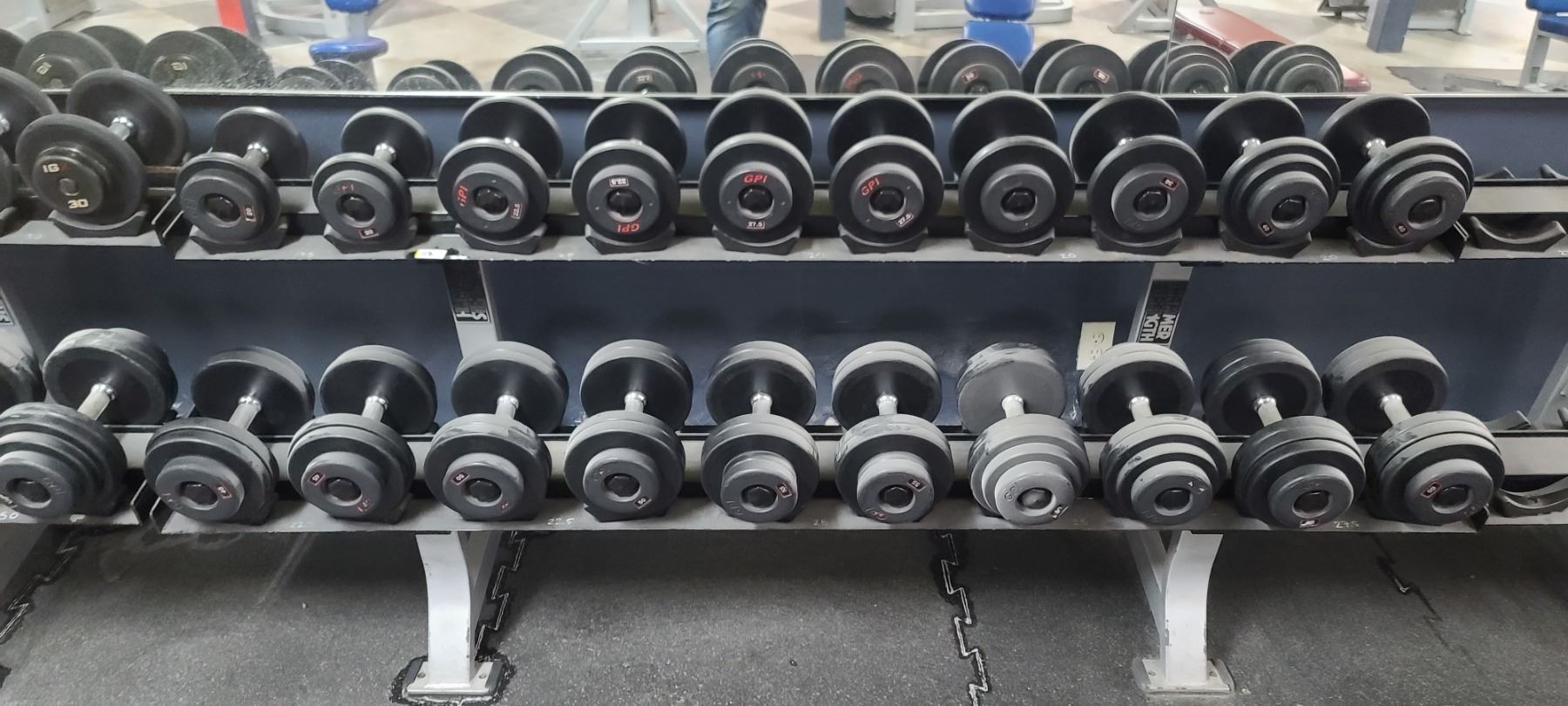 HAMMER STRENGTHH WEIGHTS RACK - PLUS TWO OF EACH DUMBELLS: 20LBS, 22.5, 27.5, 30, 40, 45, 50, 60, AND 65LBS