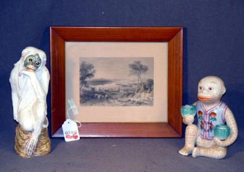 HARBOR SCENE PRINT W/ 2 MONKEY FIGURES