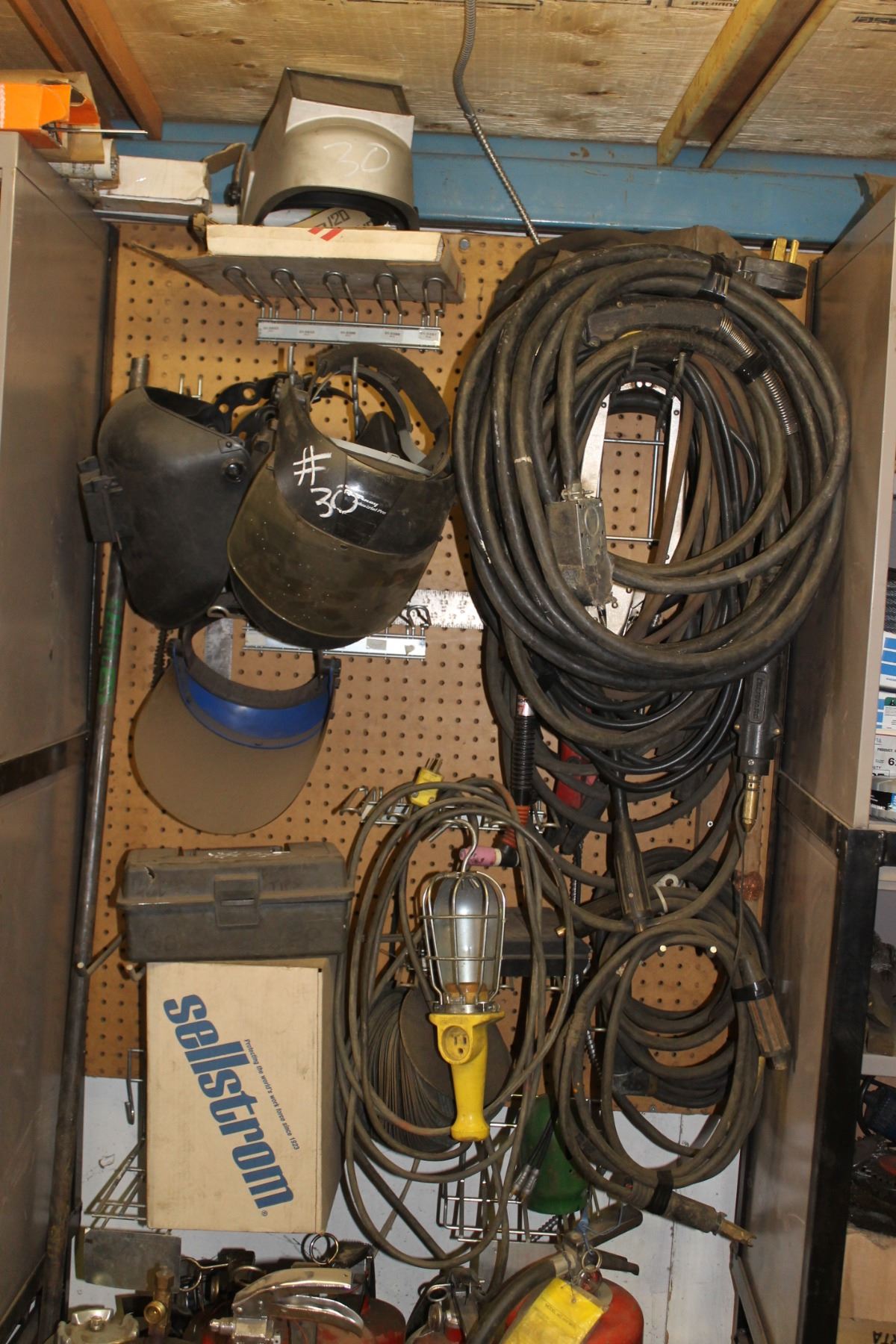 HEAVY CORDS, WELDING HELMETS HANGING ON THE WALL & CUTTING TIPS